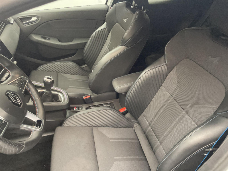 Déconnection airbag passager AV / Kit de gonflage / Ceinture centrale AR 3 points / Alerte d'oubli de ceinture de sécurité / Antenne Requin / Commutation automatique des feux de route/croisement / Harmonie noire / Eclairage AV et AR Full LED Pure Vision / Renault Multi-sense / Cartographie Standard / Caméra AR / Liseuses AVet AR à LED / Alerte de survitesse / Réplication smartphone sans fil / Banquette AR 60/40 / Calandre chromée / Feux AR cristal avec signature à LED / Pot d'échappement avec canule chromée / Prestation exterieur esprit Alpine / Prestation intérieur esprit Alpine / Rétroviseur intérieur chrome frameless / Sellerie textile gris et textile enduit grainé noir avec surpiqures bleues / Volant revêtu tissu enduit grainé perforé / Easy link 9,3": système multimedia connecté avec navigation / Avertisseur de sortie de stationnement en marche AR / Avertisseur de distance de sécurité / Compteur numérique virtual cockpit 10''