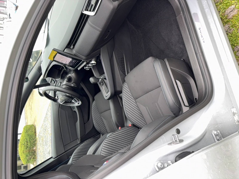 Alerte d'oubli de ceinture de sécurité / Ambiance intérieur esprit Alpine / Antenne Requin / Avertisseur de distance de sécurité / Avertisseur de sortie de stationnement en marche AR / Banquette AR 60/40 / Boîte de vitesse hybride multimode 6 rapports / Bouton de déconnection ADAS / my safety switch / Caméra AR / Cartographie Standard / Ceinture centrale AR 3 points / Commutation automatique des feux de route/croisement / Compteur numérique virtual cockpit 10'' / Contrôle de la traction (TCS) / Déconnexion airbag passager AV / Design esprit Alpine extérieur / Easy link 9,3": système multimédia et navigation / Eclairage AV et AR Full LED Pure Vision / Feux AR cristal avec signature à LED / Harmonie noire / Intel speed assist / Kit de gonflage / Prédisposition éthylotest / Renault Multi-sense / Réplication smartphone sans fil / Rétroviseur intérieur chrome frameless / Sellerie textile gris et textile enduit grainé noir avec surpiqûres bleues / Système ISOFIX aux places latérales AR et passager AV / Volant revêtu tissu enduit grainé perforé