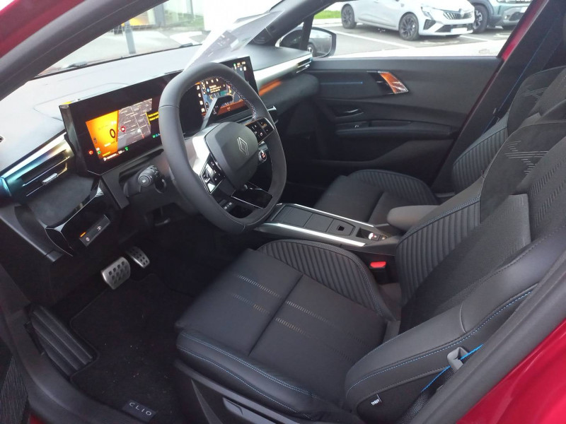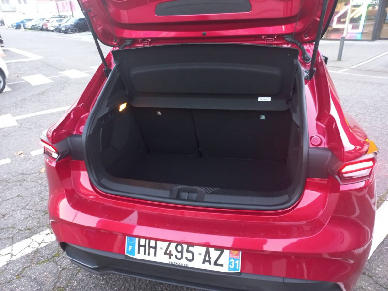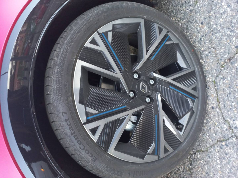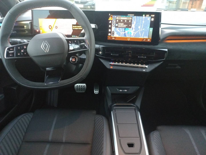 Aide au parking AV/AR et latéral / Alerte de vigilance conducteur avec détection de fatigue / Alerte sortie sécurisée des occupants / Allumage automatique des phares avec commutation automatique des feux de route/ croisement / Antenne Requin / Avertisseur d'angle mort et détection AR avec correction trajectoire d'urgence / Avertisseur de distance de sécurité / Avertisseur de sortie de stationnement en marche AR avec freinage d'urgence automatique / Boîte de vitesse hybride multimode 6 rapports / Carte accès et démarrage mains-libres / Conduite semi-autonome de niveau 1 avec centrage dans la voie / Contrôle de la traction (TCS) / Détection intelligente des limitations de vitesse et prévention survitesse / Détections avec correction de trajectoire d'urgence / Eclairage d'ambiance 3 zones / Harmonie / Jantes alliage 18'' diamantées cosmic / Kit anti-crevaison / Maintenance connectée, incluse pendant 8 ans / Mise à jour système à distance, inclus pendant 5 ans / Multi-sense : choix du mode de conduite / My Safety switch (raccourci vers configuration personnalisée des aides à la conduite) / OpenR link 10,1'' : navigation, Google intégré, audio Arkamys Auditorium, 6 haut-parleurs / Pack advanced connectivity / Pack standard connectivity, via l'app My Renault / Régulateur de vitesse adaptatif intelligent + centrage dans la voie / Réplication smartphone sans fil / Rétroviseur intérieur électrochrome avec mode jour/nuit automatique / Safety coach & safety score / Sellerie textile 100% recyclé noir et textile enduit matelassé, Alcantara®, surpiqures bleues / Siège passager AV + 2 sièges AR avec technologie isofix® / Tableau de bord avec écran d'instrumentation 10'' / Témoin et alerte de non-bouclage de ceinture de sécurité