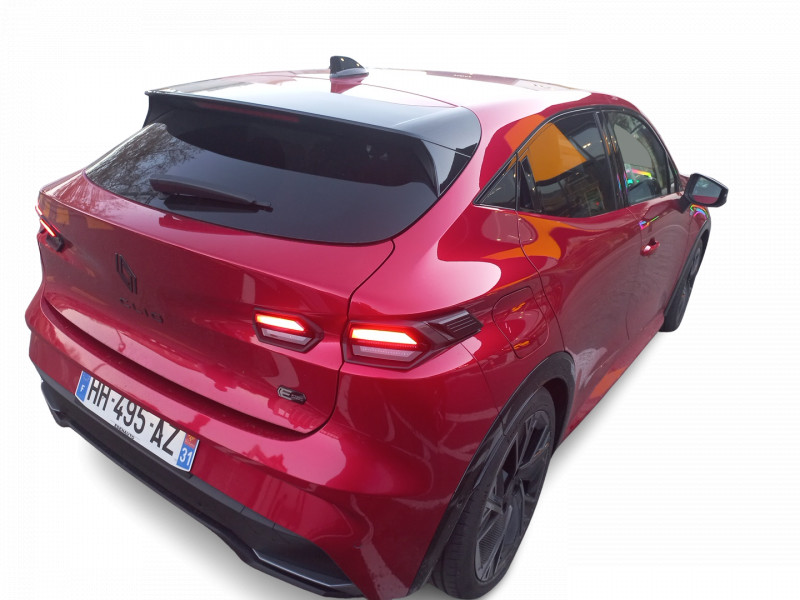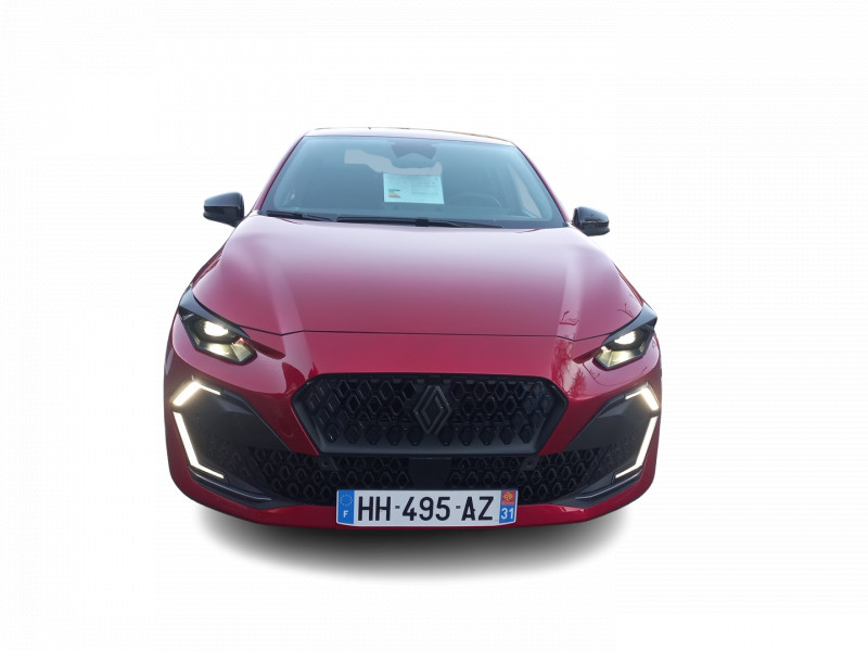 Aide au parking AV/AR et latéral / Alerte de vigilance conducteur avec détection de fatigue / Alerte sortie sécurisée des occupants / Allumage automatique des phares avec commutation automatique des feux de route/ croisement / Antenne Requin / Avertisseur d'angle mort et détection AR avec correction trajectoire d'urgence / Avertisseur de distance de sécurité / Avertisseur de sortie de stationnement en marche AR avec freinage d'urgence automatique / Boîte de vitesse hybride multimode 6 rapports / Carte accès et démarrage mains-libres / Conduite semi-autonome de niveau 1 avec centrage dans la voie / Contrôle de la traction (TCS) / Détection intelligente des limitations de vitesse et prévention survitesse / Détections avec correction de trajectoire d'urgence / Eclairage d'ambiance 3 zones / Harmonie / Jantes alliage 18'' diamantées cosmic / Kit anti-crevaison / Maintenance connectée, incluse pendant 8 ans / Mise à jour système à distance, inclus pendant 5 ans / Multi-sense : choix du mode de conduite / My Safety switch (raccourci vers configuration personnalisée des aides à la conduite) / OpenR link 10,1'' : navigation, Google intégré, audio Arkamys Auditorium, 6 haut-parleurs / Pack advanced connectivity / Pack standard connectivity, via l'app My Renault / Régulateur de vitesse adaptatif intelligent + centrage dans la voie / Réplication smartphone sans fil / Rétroviseur intérieur électrochrome avec mode jour/nuit automatique / Safety coach & safety score / Sellerie textile 100% recyclé noir et textile enduit matelassé, Alcantara®, surpiqures bleues / Siège passager AV + 2 sièges AR avec technologie isofix® / Tableau de bord avec écran d'instrumentation 10'' / Témoin et alerte de non-bouclage de ceinture de sécurité