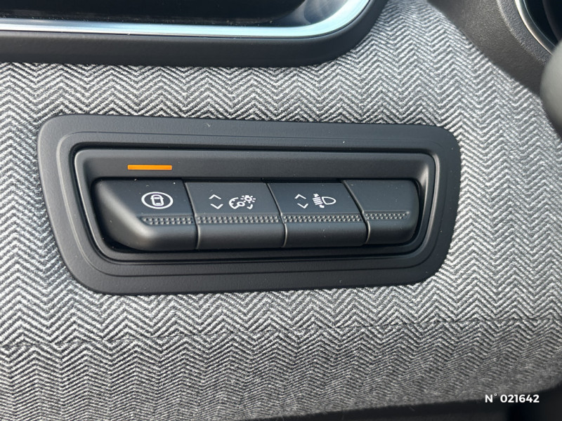 Boîte de vitesse hybride multimode 6 rapports / Antenne Requin / Harmonie noire / Eclairage AV et AR Full LED Pure Vision / Renault Multi-sense / Cartographie Standard / Caméra AR / Déconnection airbag passager AV / Kit de gonflage / Ceinture centrale AR 3 points / Système ISOFIX aux places latérales AR et passager AV / Alerte d'oubli de ceinture de sécurité / Compteur Numérique 7" / Liseuses AVet AR à LED / Réplication smartphone sans fil / Banquette AR 60/40 / Feux AR cristal avec signature à LED / Jantes alliage 16'' Boavista black / Protection inférieure de porte chromé / Rétroviseur intérieur chrome / Sellerie textile et textile enduit grainé gris/noir avec surpiqures cuivre / Avertisseur de distance de sécurité / Prédisposition éthylotest / Détection intelligente des limitations de vitesse et prévention survitesse / Bouton de déconnection ADAS / my safety switch / Intel speed assist / Easy link 7'': système multimédia et navigation / Sans prédisposition de grille de séparation / Contrôle de la traction (TCS) / Boîte de vitesse automatique 4 rapports