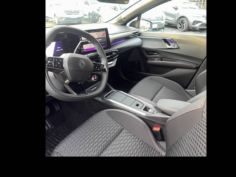 Alerte de vigilance conducteur avec détection de fatigue / Allumage automatique des phares avec commutation automatique des feux de route/ croisement / Antenne Requin / Avertisseur de distance de sécurité / Boîte de vitesse hybride multimode 6 rapports / Carte accès et démarrage mains-libres / Contrôle de la traction (TCS) / Détection intelligente des limitations de vitesse et prévention survitesse / Détections avec correction de trajectoire d'urgence / Eclairage d'ambiance 3 zones / Harmonie noire / Jantes alliage diamantées noir 16'' dynamo / Kit anti-crevaison / Maintenance connectée, incluse pendant 8 ans / Mise à jour système à distance, inclus pendant 5 ans / Multi-sense : choix du mode de conduite / My Safety switch (raccourci vers configuration personnalisée des aides à la conduite) / OpenR link 10,1'' : navigation, Google intégré, audio Arkamys Auditorium, 6 haut-parleurs / Pack advanced connectivity / Pack standard connectivity, via l'app My Renault / Réplication smartphone sans fil / Rétroviseur intérieur électrochrome avec mode jour/nuit automatique / Safety coach & safety score / Sellerie textile 100% recyclé jacquard satin embossé noir, textile enduit, surpiqures rouges / Siège passager AV + 2 sièges AR avec technologie isofix® / Sièges AV réglables en profondeur et inclinaison / Tableau de bord avec écran d'instrumentation 10'' / Témoin et alerte de non-bouclage de ceinture de sécurité / Volant textile enduit grainé