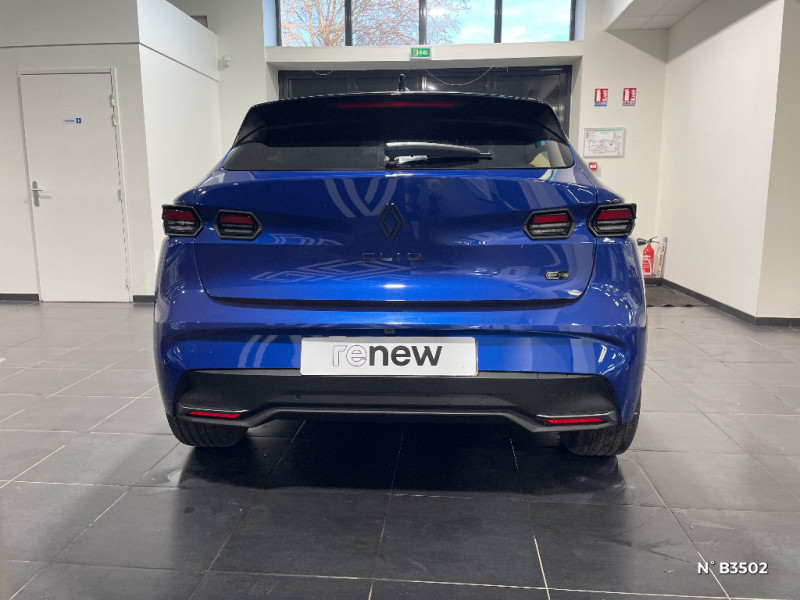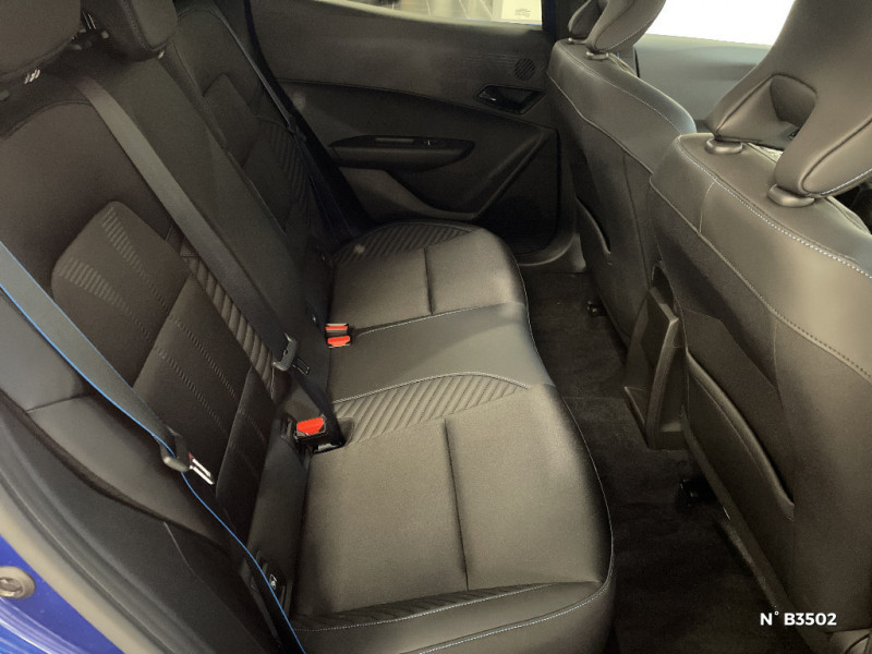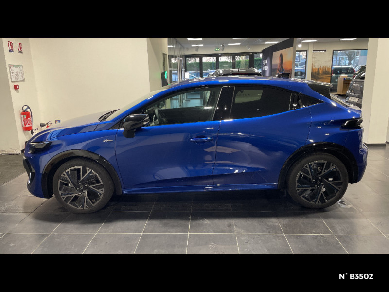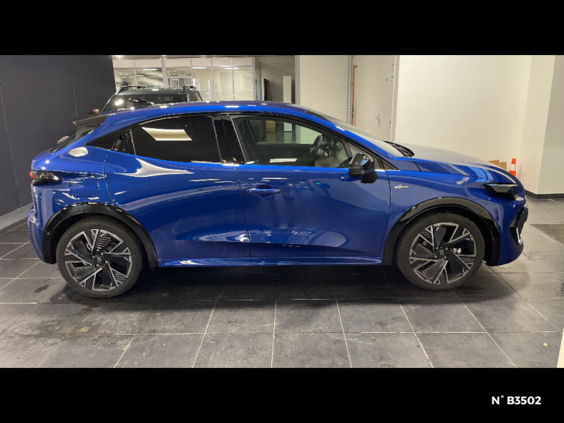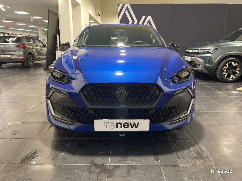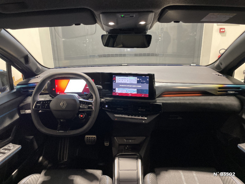 Maintenance connectée, incluse pendant 8 ans / Mise à jour système à distance, inclus pendant 5 ans / Multi-sense : choix du mode de conduite / My Safety switch (raccourci vers configuration personnalisée des aides à la conduite) / OpenR link 10,1'' : navigation, Google intégré, audio Arkamys Auditorium, 6 haut-parleurs / Pack advanced connectivity / Safety coach & safety score / Sans extension de connectivité / Sellerie textile 100% recyclé noir et textile enduit matelassé, Alcantara®, surpiqures bleues / Siège passager AV + 2 sièges AR avec technologie isofix® / Tableau de bord avec écran d'instrumentation 10'' / Témoin et alerte de non-bouclage de ceinture de sécurité / Kit anti-crevaison / Aide au parking AV/AR et latéral / Alerte de vigilance conducteur avec détection de fatigue / Alerte sortie sécurisée des occupants / Allumage automatique des phares avec commutation automatique des feux de route/ croisement / Antenne Requin / Avertisseur d'angle mort et détection AR avec correction trajectoire d'urgence / Avertisseur de distance de sécurité / Avertisseur de sortie de stationnement en marche AR avec freinage d'urgence automatique / Boîte de vitesse hybride multimode 6 rapports / Carte accès et démarrage mains-libres / Conduite semi-autonome de niveau 1 avec centrage dans la voie / Contrôle de la traction (TCS) / Détection intelligente des limitations de vitesse et prévention survitesse / Détections avec correction de trajectoire d¿urgence / Eclairage d'ambiance 3 zones / Harmonie / Jantes alliage 18'' diamantées cosmic / Pack standard connectivity, via l'app My Renault / Régulateur de vitesse adaptatif intelligent + centrage dans la voie / Réplication smartphone sans fil / Rétroviseur intérieur électrochrome avec mode jour/nuit automatique
