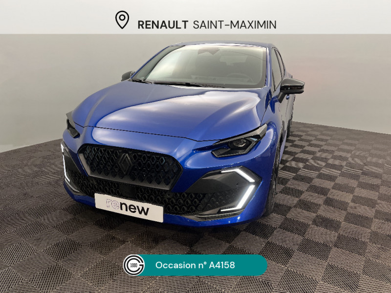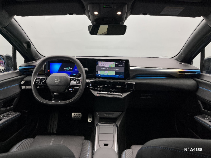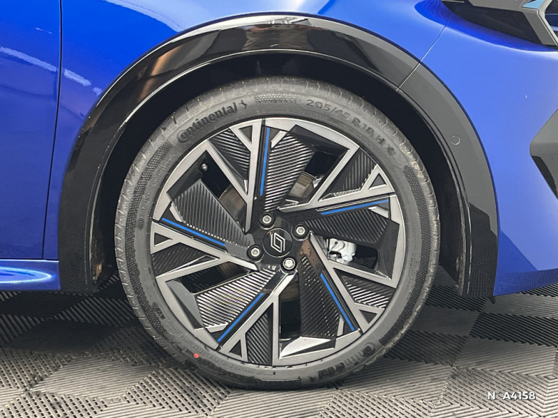 Avertisseur d'angle mort et détection AR avec correction trajectoire d'urgence / Avertisseur de distance de sécurité / Avertisseur de sortie de stationnement en marche AR avec freinage d'urgence automatique / Boîte de vitesse hybride multimode 6 rapports / Carte accès et démarrage mains-libres / Conduite semi-autonome de niveau 1 avec centrage dans la voie / Contrôle de la traction (TCS) / Détection intelligente des limitations de vitesse et prévention survitesse / Détections avec correction de trajectoire d¿urgence / Eclairage d'ambiance 3 zones / Harmonie / Jantes alliage 18'' diamantées cosmic / Kit anti-crevaison / Maintenance connectée, incluse pendant 8 ans / Mise à jour système à distance, inclus pendant 5 ans / Multi-sense : choix du mode de conduite / My Safety switch (raccourci vers configuration personnalisée des aides à la conduite) / OpenR link 10,1'' : navigation, Google intégré, audio Arkamys Auditorium, 6 haut-parleurs / Pack advanced connectivity / Pack standard connectivity, via l'app My Renault / Régulateur de vitesse adaptatif intelligent + centrage dans la voie / Réplication smartphone sans fil / Rétroviseur intérieur électrochrome avec mode jour/nuit automatique / Safety coach & safety score / Sans extension de connectivité / Sellerie textile 100% recyclé noir et textile enduit matelassé, Alcantara®, surpiqures bleues / Siège passager AV + 2 sièges AR avec technologie isofix® / Tableau de bord avec écran d'instrumentation 10'' / Témoin et alerte de non-bouclage de ceinture de sécurité / Aide au parking AV/AR et latéral / Alerte de vigilance conducteur avec détection de fatigue / Alerte sortie sécurisée des occupants / Allumage automatique des phares avec commutation automatique des feux de route/ croisement / Antenne Requin