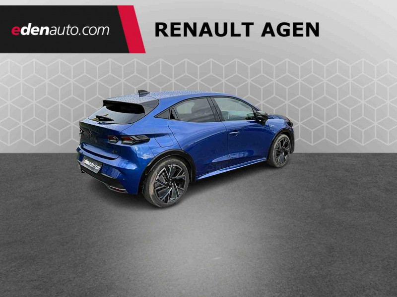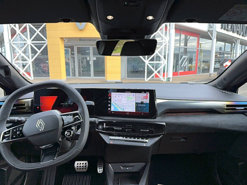 Aide au parking AV/AR et latéral / Alerte de vigilance conducteur avec détection de fatigue / Alerte sortie sécurisée des occupants / Allumage automatique des phares avec commutation automatique des feux de route/ croisement / Antenne Requin / Avertisseur d'angle mort et détection AR avec correction trajectoire d'urgence / Avertisseur de distance de sécurité / Avertisseur de sortie de stationnement en marche AR avec freinage d'urgence automatique / Boîte de vitesse hybride multimode 6 rapports / Carte accès et démarrage mains-libres / Conduite semi-autonome de niveau 1 avec centrage dans la voie / Contrôle de la traction (TCS) / Détection intelligente des limitations de vitesse et prévention survitesse / Détections avec correction de trajectoire d'urgence / Eclairage d'ambiance 3 zones / Harmonie / Jantes alliage 18'' diamantées cosmic / Kit anti-crevaison / Maintenance connectée, incluse pendant 8 ans / Mise à jour système à distance, inclus pendant 5 ans / Multi-sense : choix du mode de conduite / My Safety switch (raccourci vers configuration personnalisée des aides à la conduite) / OpenR link 10,1'' : navigation, Google intégré, audio Arkamys Auditorium, 6 haut-parleurs / Pack advanced connectivity / Pack standard connectivity, via l'app My Renault / Régulateur de vitesse adaptatif intelligent + centrage dans la voie / Réplication smartphone sans fil / Rétroviseur intérieur électrochrome avec mode jour/nuit automatique / Safety coach & safety score / Sans extension de connectivité / Sellerie textile 100% recyclé noir et textile enduit matelassé, Alcantara®, surpiqures bleues / Siège passager AV + 2 sièges AR avec technologie isofix® / Tableau de bord avec écran d'instrumentation 10'' / Témoin et alerte de non-bouclage de ceinture de sécurité