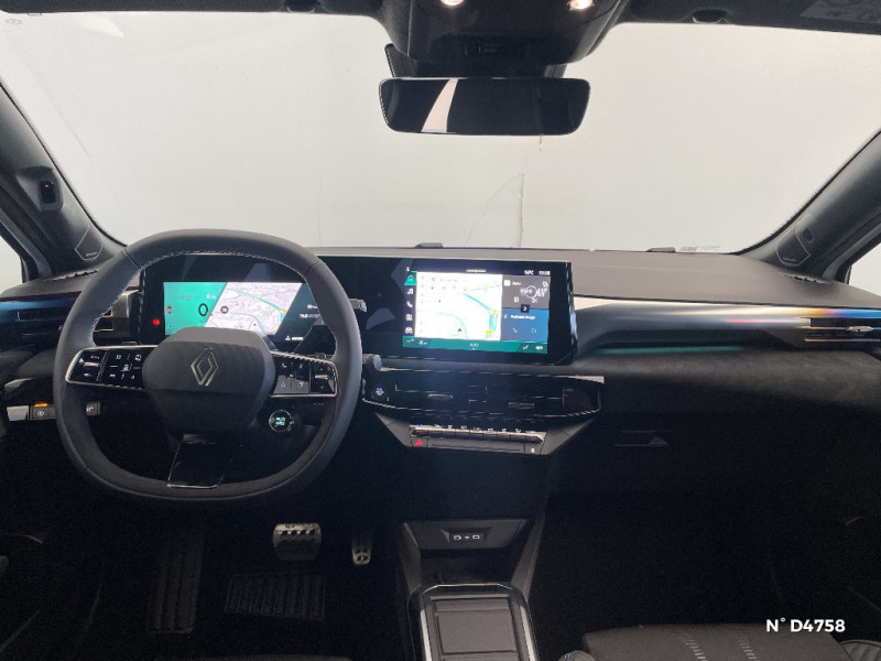 Réplication smartphone sans fil / Safety coach & safety score / Sans extension de connectivité / Sellerie textile 100% recyclé noir et textile enduit matelassé, Alcantara®, surpiqures bleues / Siège passager AV + 2 sièges AR avec technologie isofix® / Tableau de bord avec écran d'instrumentation 10'' / Témoin et alerte de non-bouclage de ceinture de sécurité / Aide au parking AV/AR et latéral / Alerte de vigilance conducteur avec détection de fatigue / Alerte sortie sécurisée des occupants / Allumage automatique des phares avec commutation automatique des feux de route/ croisement / Antenne Requin / Avertisseur d'angle mort et détection AR avec correction trajectoire d'urgence / Avertisseur de distance de sécurité / Avertisseur de sortie de stationnement en marche AR avec freinage d'urgence automatique / Boîte de vitesse automatique 6 rapports / Carte accès et démarrage mains-libres / Conduite semi-autonome de niveau 1 avec centrage dans la voie / Contrôle de la traction (TCS) / Détection intelligente des limitations de vitesse et prévention survitesse / Détections avec correction de trajectoire d¿urgence / Eclairage d'ambiance 3 zones / Harmonie / Jantes alliage 18'' diamantées cosmic / Kit anti-crevaison / Maintenance connectée, incluse pendant 8 ans / Mise à jour système à distance, inclus pendant 5 ans / Multi-sense : choix du mode de conduite / My Safety switch (raccourci vers configuration personnalisée des aides à la conduite) / OpenR link 10,1'' : navigation, Google intégré, audio Arkamys Auditorium, 6 haut-parleurs / Pack advanced connectivity / Pack standard connectivity, via l'app My Renault / Régulateur de vitesse adaptatif intelligent + centrage dans la voie / Rétroviseur intérieur électrochrome avec mode jour/nuit automatique