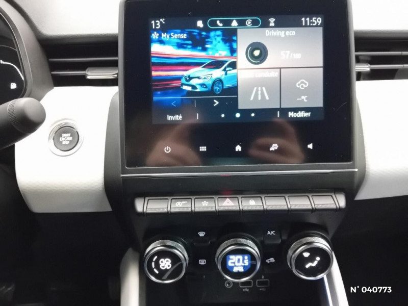Kit de gonflage / Décor Extérieur Chrome / Canule d'échappement chromée / Décors Extérieur Noir Brillant / Harmonie noire / EASY LINK 7" : Système multimédia connécté avec écran 7" avec Navigation et Radio Numérique DAB / Aide au freinage actif d'urgence avec détection piétons (AEBS City + Inter Urbain + Piéton) / Eclairage AV et AR Full LED Pure Vision / Feux AR avec signature à LED / Projecteurs Full LED avec signature lumineuse en force de "C" / Tableau de bord numérique 7" / Sellerie mixte similicuir Tissu / Freinage actif d'urgence avec détection piétons et cyclistes (AEBS City + Inter Urbain+ Piéton) / Jantes alliage 16" Philia diamantée noir / Calandre étoilée / Filet de rangement / Navigation connectée cartographie Europe, recherche avec Google, info trafic live et auto update / Ambiance Gris clair (bandeau planche de bord, entourage de console centrale et panneaux de portes) / Alerte de survitesse / Renault Multi-Sense (choix de modes de conduite) / Pare-soleil avec miroir de courtoisie éclairé / Antenne Requin