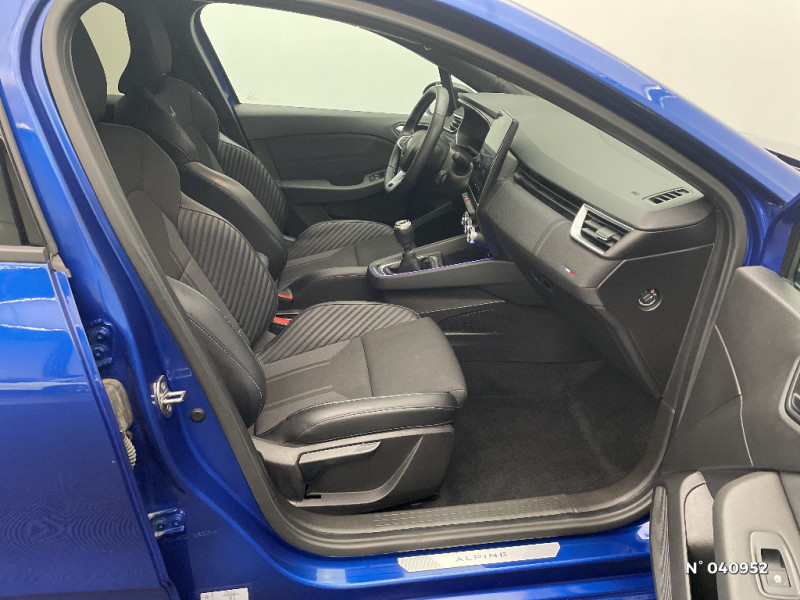 Compteur numérique virtual cockpit 10'' / Alerte détection de fatigue / Prédisposition éthylotest / Détection intelligente des limitations de vitesse et prévention survitesse / Ambiance intérieur esprit Alpine / Bouton de déconnection ADAS / my safety switch / Easy link 9,3": système multimédia et navigation / Déconnection airbag passager AV / Kit de gonflage / Ceinture centrale AR 3 points / Système ISOFIX aux places latérales AR et passager AV / Alerte d'oubli de ceinture de sécurité / Antenne Requin / Commutation automatique des feux de route/croisement / Harmonie noire / Eclairage AV et AR Full LED Pure Vision / Renault Multi-sense / Cartographie Standard / Caméra AR / Réplication smartphone sans fil / Sellerie textile gris et textile enduit grainé noir avec surpiqures bleues / Volant revêtu tissu enduit grainé perforé / Easy link 9,3": système multimedia connecté avec navigation / Avertisseur de sortie de stationnement en marche AR / Avertisseur de distance de sécurité / Design esprit Alpine extérieur / Banquette AR 60/40 / Calandre chromée / Feux AR cristal avec signature à LED / Pot d'échappement avec canule chromée / Rétroviseur intérieur chrome frameless