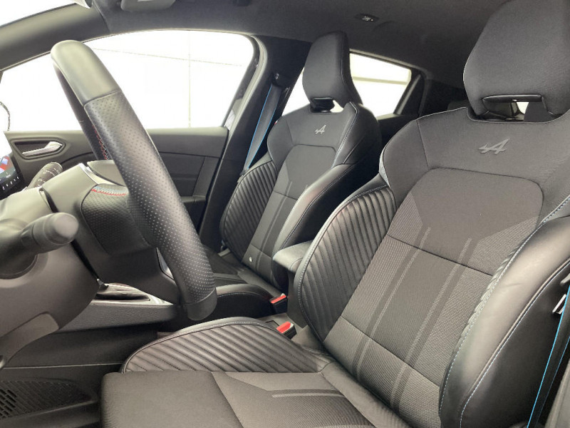 Avertisseur de sortie de stationnement en marche AR / Ceinture centrale AR 3 points / Caméra AR / Antenne Requin / Commutation automatique des feux de route/croisement / Sellerie textile gris et textile enduit grainé noir avec surpiqûres bleues / Volant revêtu tissu enduit grainé perforé / Alerte d'oubli de ceinture de sécurité / Banquette AR 60/40 / Prestation exterieur esprit Alpine / Déconnexion airbag passager AV / Kit de gonflage / Harmonie noire / Feux AR cristal avec signature à LED / Easy link 9,3": système multimedia connecté avec navigation / Tableau de bord numérique 10'' / Compteur numérique virtual cockpit 10'' / Prestation intérieur esprit Alpine / Renault Multi-sense / Assistant Autoroute et Trafic / Calandre chromée / Avertisseur de distance de sécurité / Réplication smartphone sans fil / Eclairage AV et AR Full LED Pure Vision / Cartographie Standard / Alerte de survitesse / Rétroviseur intérieur chrome frameless