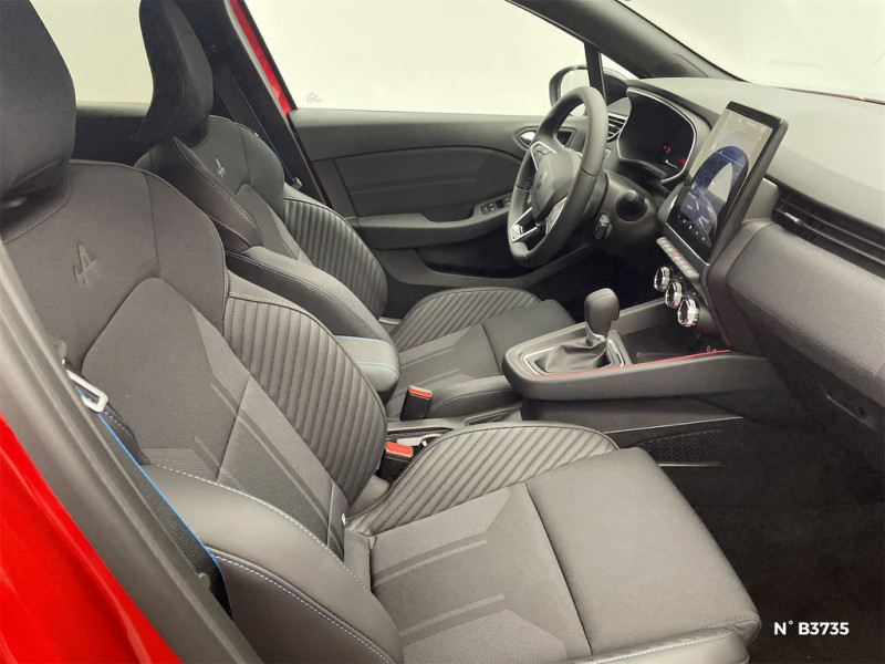 Renault Multi-sense / Réplication smartphone sans fil / Rétroviseur intérieur chrome frameless / Sellerie textile gris et textile enduit grainé noir avec surpiqûres bleues / Système ISOFIX aux places latérales AR et passager AV / Volant revêtu tissu enduit grainé perforé / Kit de gonflage / Liseuses AV et AR à LED / Prédisposition éthylotest / Alerte d'oubli de ceinture de sécurité / Ambiance intérieur esprit Alpine / Antenne Requin / Avertisseur de distance de sécurité / Avertisseur de sortie de stationnement en marche AR / Banquette AR 60/40 / Boîte de vitesse automatique 4 rapports / Bouton de déconnection ADAS / my safety switch / Caméra AR / Cartographie Standard / Ceinture centrale AR 3 points / Commutation automatique des feux de route/croisement / Compteur numérique virtual cockpit 10'' / Contrôle de la traction (TCS) / Déconnexion airbag passager AV / Design esprit Alpine extérieur / Easy link 9,3": système multimédia et navigation / Eclairage AV et AR Full LED Pure Vision / Feux AR cristal avec signature à LED / Harmonie noire / Intel speed assist