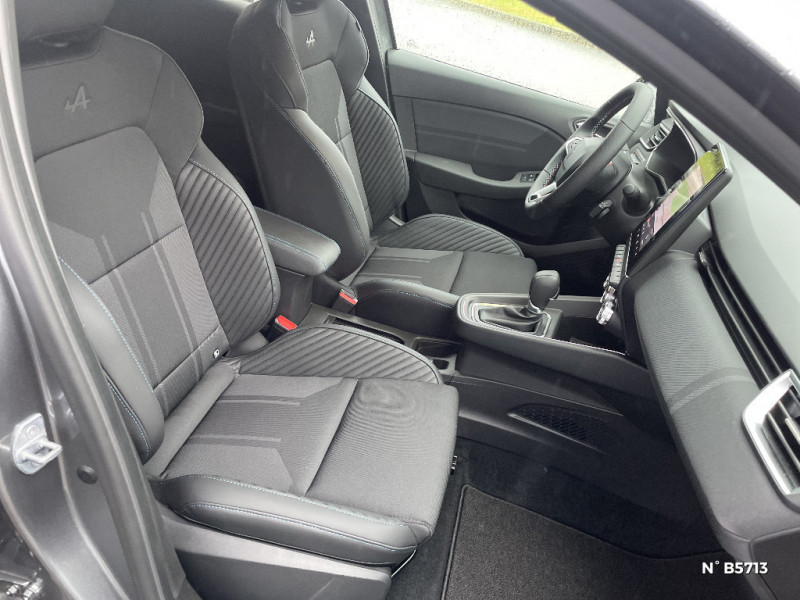 Intel speed assist / Sellerie textile gris et textile enduit grainé noir avec surpiqûres bleues / Kit de gonflage / Liseuses AV et AR à LED / Prédisposition éthylotest / Renault Multi-sense / Réplication smartphone sans fil / Boîte de vitesse hybride multimode 6 rapports / Bouton de déconnection ADAS / my safety switch / Caméra AR / Cartographie Standard / Ceinture centrale AR 3 points / Commutation automatique des feux de route/croisement / Compteur numérique virtual cockpit 10'' / Contrôle de la traction (TCS) / Déconnexion airbag passager AV / Design esprit Alpine extérieur / Easy link 9,3": système multimédia et navigation / Eclairage AV et AR Full LED Pure Vision / Feux AR cristal avec signature à LED / Harmonie noire / Alerte d'oubli de ceinture de sécurité / Ambiance intérieur esprit Alpine / Antenne Requin / Avertisseur de distance de sécurité / Avertisseur de sortie de stationnement en marche AR / Banquette AR 60/40 / Système ISOFIX aux places latérales AR et passager AV / Volant revêtu tissu enduit grainé perforé / Rétroviseur intérieur chrome frameless