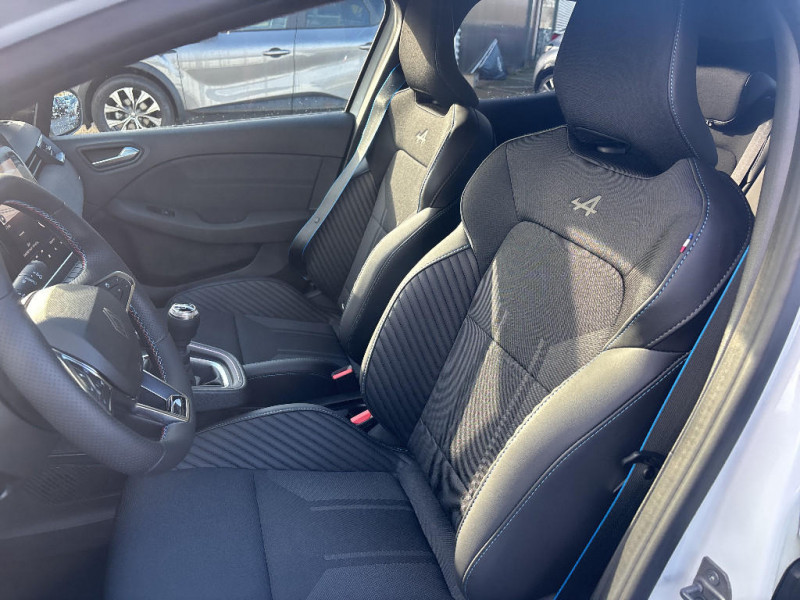 Avertisseur de sortie de stationnement en marche AR / Volant revêtu tissu enduit grainé perforé / Boîte de vitesse manuelle 6 rapports / Bouton de déconnection ADAS / my safety switch / Caméra AR / Cartographie Standard / Ceinture centrale AR 3 points / Commutation automatique des feux de route/croisement / Compteur numérique virtual cockpit 10'' / Contrôle de la traction (TCS) / Déconnexion airbag passager AV / Design esprit Alpine extérieur / Easy link 9,3": système multimédia et navigation / Eclairage AV et AR Full LED Pure Vision / Feux AR cristal avec signature à LED / Harmonie noire / Intel speed assist / Kit de gonflage / Liseuses AV et AR à LED / Prédisposition éthylotest / Renault Multi-sense / Réplication smartphone sans fil / Rétroviseur intérieur chrome frameless / Sellerie textile gris et textile enduit grainé noir avec surpiqûres bleues / Système ISOFIX aux places latérales AR et passager AV / Alerte d'oubli de ceinture de sécurité / Ambiance intérieur esprit Alpine / Antenne Requin / Avertisseur de distance de sécurité / Banquette AR 60/40