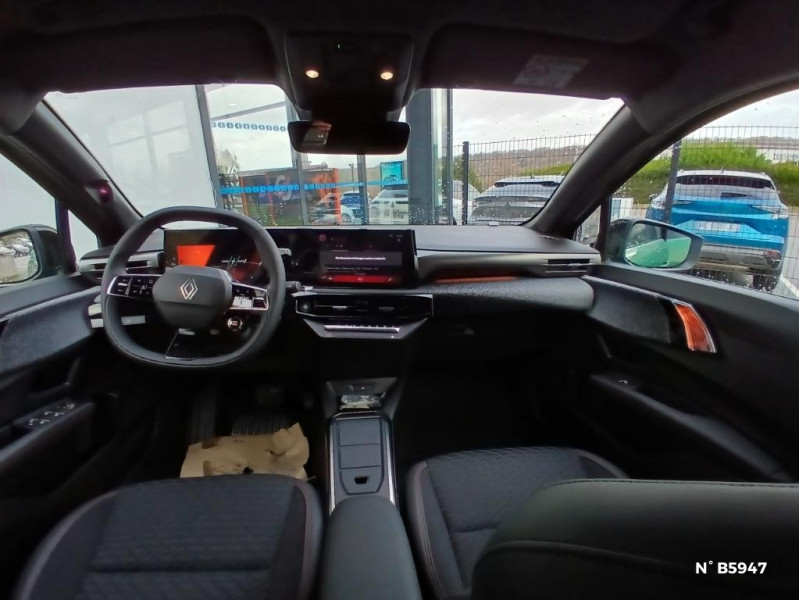 Volant textile enduit grainé / Alerte de vigilance conducteur avec détection de fatigue / Allumage automatique des phares avec commutation automatique des feux de route/ croisement / Antenne Requin / Avertisseur de distance de sécurité / Boîte de vitesse hybride multimode 6 rapports / Carte accès et démarrage mains-libres / Contrôle de la traction (TCS) / Détection intelligente des limitations de vitesse et prévention survitesse / Détections avec correction de trajectoire d'urgence / Eclairage d'ambiance 3 zones / Harmonie noire / Jantes alliage diamantées noir 16'' dynamo / Kit anti-crevaison / Maintenance connectée, incluse pendant 8 ans / Mise à jour système à distance, inclus pendant 5 ans / Multi-sense : choix du mode de conduite / My Safety switch (raccourci vers configuration personnalisée des aides à la conduite) / OpenR link 10,1'' : navigation, Google intégré, audio Arkamys Auditorium, 6 haut-parleurs / Pack advanced connectivity / Pack standard connectivity, via l'app My Renault / Réplication smartphone sans fil / Rétroviseur intérieur électrochrome avec mode jour/nuit automatique / Safety coach & safety score / Sellerie textile 100% recyclé jacquard satin embossé noir, textile enduit, surpiqures rouges / Siège passager AV + 2 sièges AR avec technologie isofix® / Sièges AV réglables en profondeur et inclinaison / Tableau de bord avec écran d'instrumentation 10'' / Témoin et alerte de non-bouclage de ceinture de sécurité