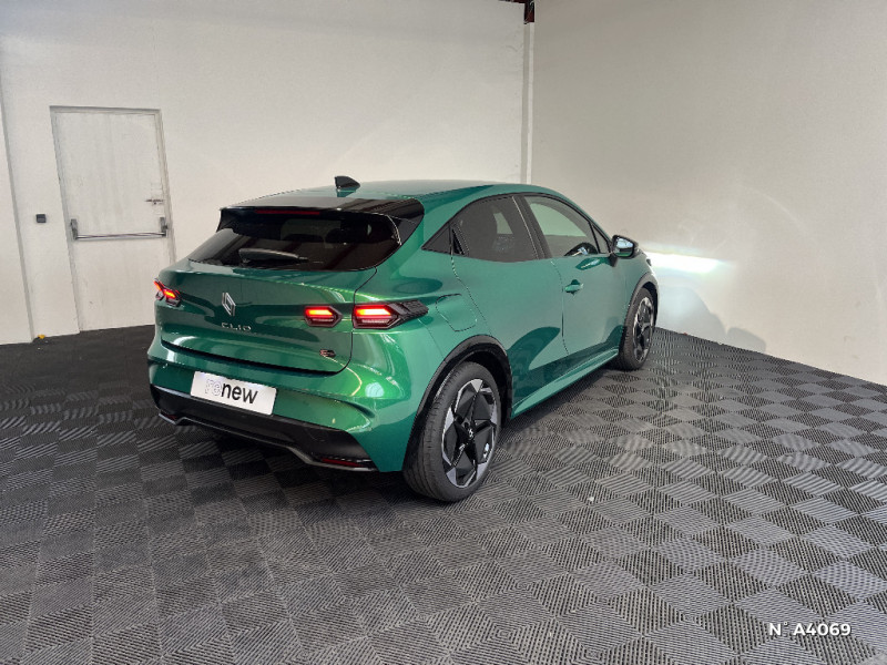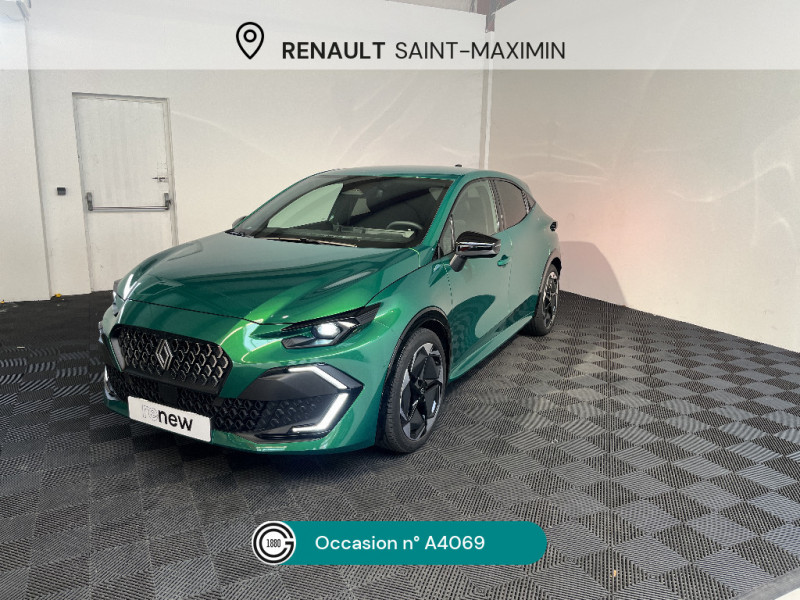 Boîte de vitesse hybride multimode 6 rapports / Sans extension de connectivité / Carte accès et démarrage mains-libres / Contrôle de la traction (TCS) / Sellerie textile 100% recyclé jacquard satin embossé noir, textile enduit, surpiqures rouges / Siège passager AV + 2 sièges AR avec technologie isofix® / Sièges AV réglables en profondeur et inclinaison / Tableau de bord avec écran d'instrumentation 10'' / Témoin et alerte de non-bouclage de ceinture de sécurité / Volant textile enduit grainé / Détection intelligente des limitations de vitesse et prévention survitesse / Détections avec correction de trajectoire d'urgence / Eclairage d'ambiance 3 zones / Harmonie noire / Jantes alliage diamantées noir 16'' dynamo / Kit anti-crevaison / Maintenance connectée, incluse pendant 8 ans / Mise à jour système à distance, inclus pendant 5 ans / Multi-sense : choix du mode de conduite / My Safety switch (raccourci vers configuration personnalisée des aides à la conduite) / Alerte de vigilance conducteur avec détection de fatigue / Allumage automatique des phares avec commutation automatique des feux de route/ croisement / Antenne Requin / Avertisseur de distance de sécurité / Pack standard connectivity, via l'app My Renault / OpenR link 10,1'' : navigation, Google intégré, audio Arkamys Auditorium, 6 haut-parleurs / Pack advanced connectivity / Réplication smartphone sans fil / Rétroviseur intérieur électrochrome avec mode jour/nuit automatique / Safety coach & safety score