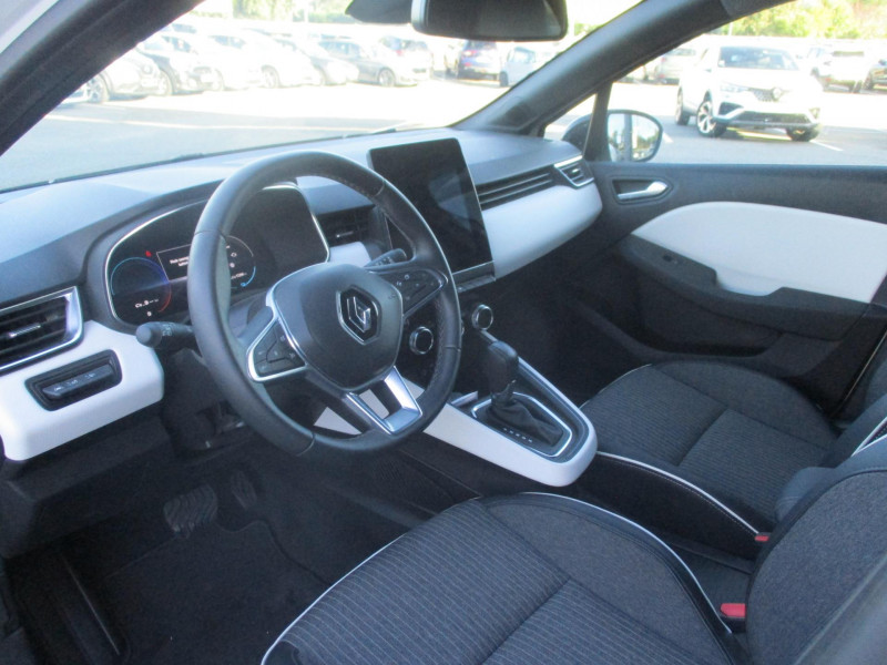 6 haut-parleurs / Accoudoir avant, coulissant - avec rangement fermé de 2,2 l / Aérateurs latéraux chrome satiné / Airbags rideaux de têtes aux places avant et arrière / Alerte distance de sécurité / Alerte oubli des ceintures de sécurité aux 5 places avec détection des occupants / Antenne de type requin couleur noir brillant / Appuie-tête AV anti "coup du lapin" / Badges chromés sur les ailes avant et la porte de coffre / Bluetooth, 2 USB, 1 AUX / Boîte à gants fermée, éclairage et refroidissement, avec abattant à ouverture douce (8,4 l) / Bouclier avant sport lame F1 ton caisse / Bouton d?appel d?urgence r-call / Bouton EV de passage en mode tout électrique / Carte Renault avec accès et démarrage mains-libres avec fermeture à l?éloignement / Ceinture centrale arrière 3 points, avec prétensionneur / Ceintures de sécurité AV et latérales AR à prétensionneurs et limiteurs d'effort / Coiffe de planche de bord en noir, avec matériau moussé / Console centrale avant flottante, avec gainage en matériau soft / Désactivation manuelle de l'airbag passager / Diffuseur arrière Noir Brillant / Direction assistée électrique variable / Double microphone pour conversation téléphonique de qualité / EASY LINK, écran multimédia 7?, compatible Android Auto et Apple CarPlay / Eclairage intérieur avant et arrière avec 4 liseuses LED / Ecran 7" conducteur personnalisable / Entourage de vitres latérales noir brillant / Entourage levier de vitesses chromés / ESC / Feux arrière à LED avec signature lumineuse en forme de C avec effet profondeur / Freinage actif d?urgence, avec détection des voitures, motos, piétons, cyclistes (jour et nuit) / Grille inférieure de calandre en nid-d?abeilles / Inserts décoratifs sur le volant à effet "chromé-satiné" / Jantes alliage diamantées 16? boa vista / Joncs chromés sur bandeau supérieur de calandre / Jupe de bouclier arrière noir brillant / Kit de réparation / regonflage de pneus / Logo Renault chromé, avec bandeau supérieur de calandre Noir Brillant / Mode ECO avec bouton d'activation / Montants latéraux en noir brillant / Ornements latéraux chromés / Pack Ambiance Lutecia / Poignées arrière intégrées noir brillant / Poignées de porte avant couleur carrosserie / Pommeau de levier de vitesse revêtu textile enduit grainé noir / Prévention survitesse / Projecteurs avant 100% à LED Performance éclairage Renault LED pure vision avec faisceau allongé et élargi / Protections inférieures de porte chromées / Réception radio numérique (DAB+ et traditionnels FM/AM) / Renault MULTI-SENSE, personnalisation des modes de conduites et ambiance intérieures (3 mode pré-définis: MY SENSE, ECO, SPORT) / Rétroviseur intérieur électrochrome / Sellerie lutecia 60% biosourcée, mixte noir/gris et tissu anthracite à fines rayures, jonc gris / Service Auto-Update - 3 ans inclus / Sièges AV à maintien latéral renforcé / Sièges avant lutecia, assise élargie et maintien latéral amélioré / Système d'appel en cas de panne : B-Call / Véhicule connecté 4G avec pack de données inclus pendant 3 ans / Vitres avant électriques avec descente et remontée à impulsion / Volant en textile enduit grainé cousu