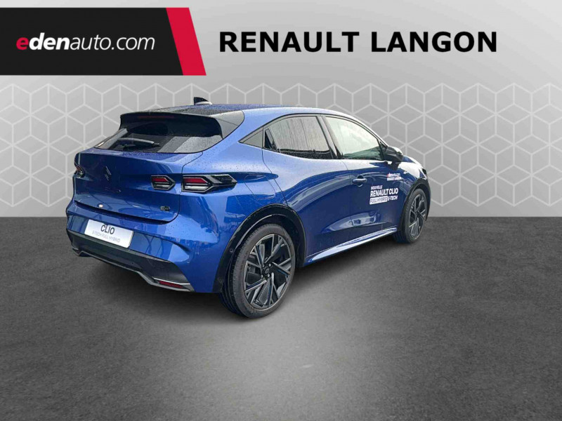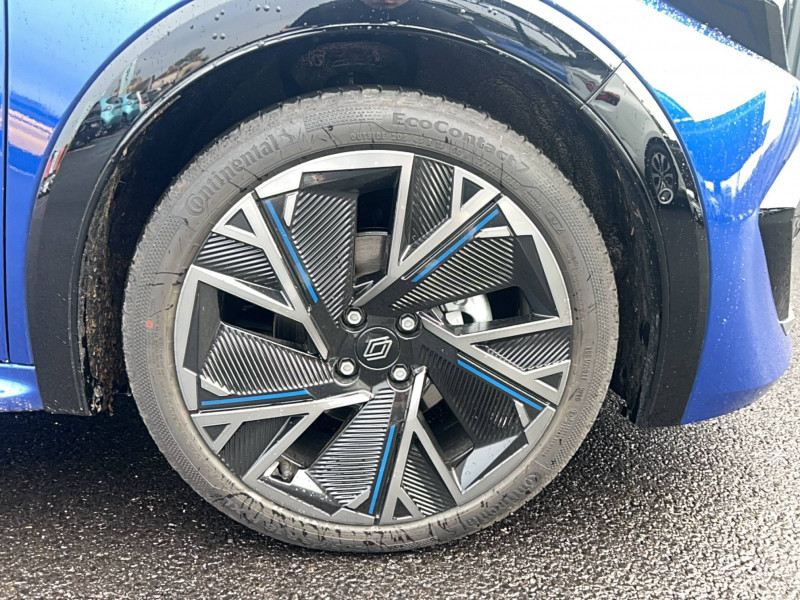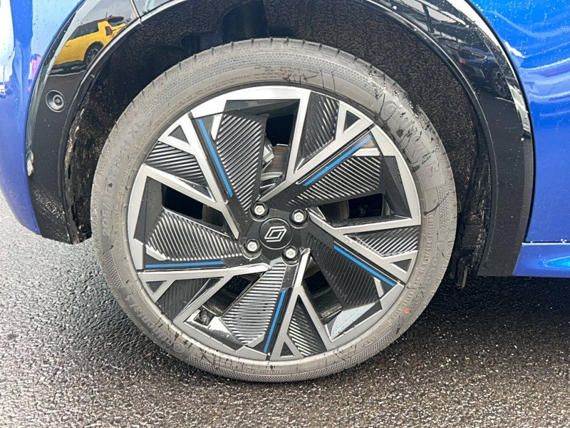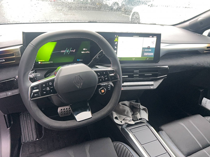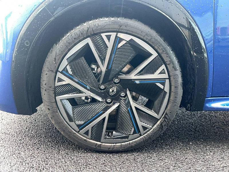 Aide au parking AV/AR et latéral / Alerte de vigilance conducteur avec détection de fatigue / Alerte sortie sécurisée des occupants / Allumage automatique des phares avec commutation automatique des feux de route/ croisement / Antenne Requin / Avertisseur d'angle mort et détection AR avec correction trajectoire d'urgence / Avertisseur de distance de sécurité / Avertisseur de sortie de stationnement en marche AR avec freinage d'urgence automatique / Boîte de vitesse hybride multimode 6 rapports / Carte accès et démarrage mains-libres / Conduite semi-autonome de niveau 1 avec centrage dans la voie / Contrôle de la traction (TCS) / Détection intelligente des limitations de vitesse et prévention survitesse / Détections avec correction de trajectoire d'urgence / Eclairage d'ambiance 3 zones / Harmonie / Jantes alliage 18'' diamantées cosmic / Kit anti-crevaison / Maintenance connectée, incluse pendant 8 ans / Mise à jour système à distance, inclus pendant 5 ans / Multi-sense : choix du mode de conduite / My Safety switch (raccourci vers configuration personnalisée des aides à la conduite) / OpenR link 10,1'' : navigation, Google intégré, audio Arkamys Auditorium, 6 haut-parleurs / Pack advanced connectivity / Pack standard connectivity, via l'app My Renault / Régulateur de vitesse adaptatif intelligent + centrage dans la voie / Réplication smartphone sans fil / Rétroviseur intérieur électrochrome avec mode jour/nuit automatique / Safety coach & safety score / Sans extension de connectivité / Sellerie textile 100% recyclé noir et textile enduit matelassé, Alcantara®, surpiqures bleues / Siège passager AV + 2 sièges AR avec technologie isofix® / Tableau de bord avec écran d'instrumentation 10'' / Témoin et alerte de non-bouclage de ceinture de sécurité