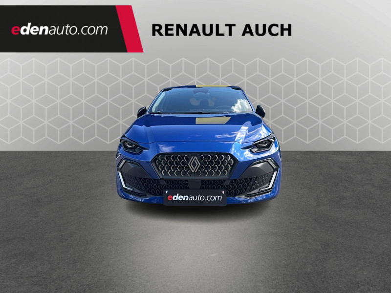 Alerte de vigilance conducteur avec détection de fatigue / Allumage automatique des phares avec commutation automatique des feux de route/ croisement / Antenne Requin / Avertisseur de distance de sécurité / Boîte de vitesse automatique 6 rapports / Carte accès et démarrage mains-libres / Contrôle de la traction (TCS) / Détection intelligente des limitations de vitesse et prévention survitesse / Détections avec correction de trajectoire d'urgence / Eclairage d'ambiance 3 zones / Harmonie noire / Jantes alliage diamantées noir 16'' dynamo / Kit anti-crevaison / Maintenance connectée, incluse pendant 8 ans / Mise à jour système à distance, inclus pendant 5 ans / Multi-sense : choix du mode de conduite / My Safety switch (raccourci vers configuration personnalisée des aides à la conduite) / OpenR link 10,1'' : navigation, Google intégré, audio Arkamys Auditorium, 6 haut-parleurs / Pack advanced connectivity / Pack standard connectivity, via l'app My Renault / Réplication smartphone sans fil / Rétroviseur intérieur électrochrome avec mode jour/nuit automatique / Safety coach & safety score / Sans extension de connectivité / Sellerie textile 100% recyclé jacquard satin embossé noir, textile enduit, surpiqures rouges / Siège passager AV + 2 sièges AR avec technologie isofix® / Sièges AV réglables en profondeur et inclinaison / Tableau de bord avec écran d'instrumentation 10'' / Témoin et alerte de non-bouclage de ceinture de sécurité / Volant textile enduit grainé