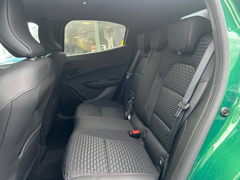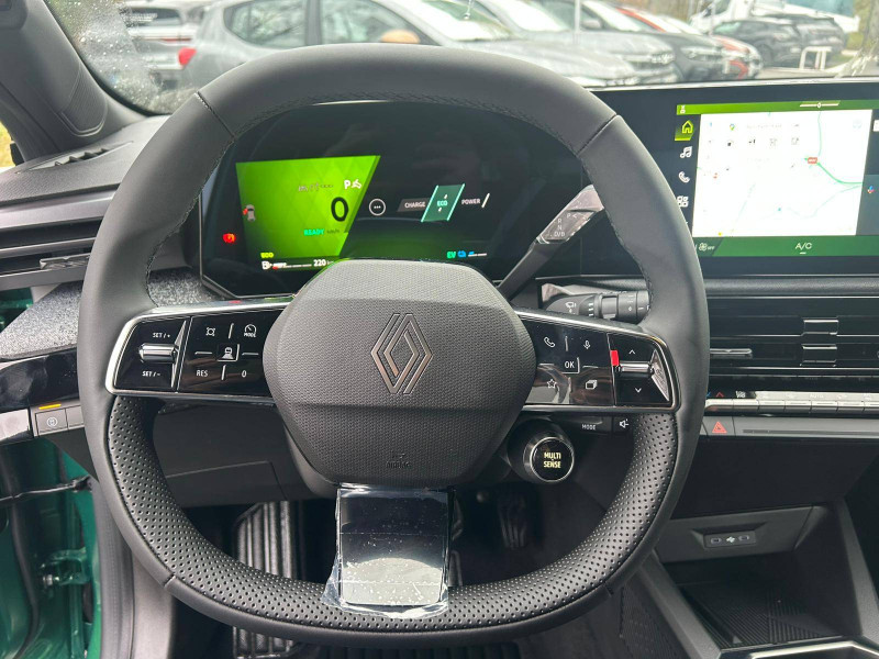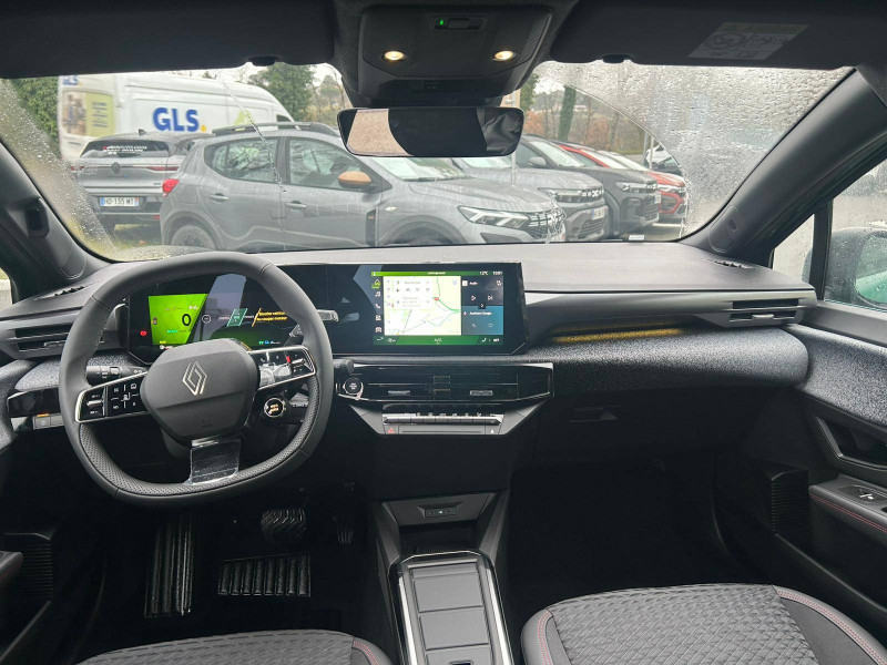 Alerte de vigilance conducteur avec détection de fatigue / Allumage automatique des phares avec commutation automatique des feux de route/ croisement / Antenne Requin / Avertisseur de distance de sécurité / Boîte de vitesse hybride multimode 6 rapports / Carte accès et démarrage mains-libres / Contrôle de la traction (TCS) / Détection intelligente des limitations de vitesse et prévention survitesse / Détections avec correction de trajectoire d'urgence / Eclairage d'ambiance 3 zones / Harmonie noire / Jantes alliage diamantées noir 16'' dynamo / Kit anti-crevaison / Maintenance connectée, incluse pendant 8 ans / Mise à jour système à distance, inclus pendant 5 ans / Multi-sense : choix du mode de conduite / My Safety switch (raccourci vers configuration personnalisée des aides à la conduite) / OpenR link 10,1'' : navigation, Google intégré, audio Arkamys Auditorium, 6 haut-parleurs / Pack advanced connectivity / Pack standard connectivity, via l'app My Renault / Réplication smartphone sans fil / Rétroviseur intérieur électrochrome avec mode jour/nuit automatique / Safety coach & safety score / Sellerie textile 100% recyclé jacquard satin embossé noir, textile enduit, surpiqures rouges / Siège passager AV + 2 sièges AR avec technologie isofix® / Sièges AV réglables en profondeur et inclinaison / Tableau de bord avec écran d'instrumentation 10'' / Témoin et alerte de non-bouclage de ceinture de sécurité / Volant textile enduit grainé