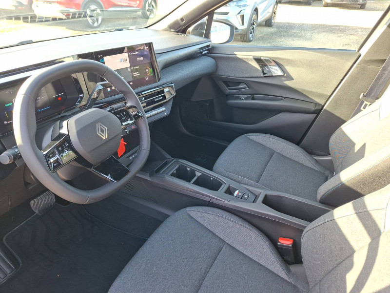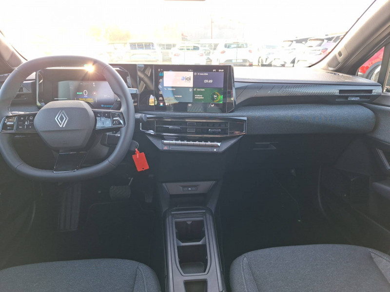 Alerte de vigilance conducteur avec détection de fatigue / Antenne Requin / Avertisseur de distance de sécurité / Boîte de vitesse hybride multimode 6 rapports / Compteur numérique 7" / Contrôle de la traction (TCS) / Détection intelligente des limitations de vitesse et prévention survitesse / Détections avec correction de trajectoire d'urgence / Eclairage plafonnier / Enjoliveurs 16'' synchro / Harmonie / Kit anti-crevaison / Maintenance connectée, incluse pendant 8 ans / Mise à jour système à distance, inclus pendant 5 ans / My Safety switch (raccourci vers configuration personnalisée des aides à la conduite) / OpenR link 10,1'' : système multimédia avec radio intégrée, 4 haut-parleurs / Pack advanced connectivity / Pack standard connectivity, via l'app My Renault / Réplication smartphone sans fil / Rétroviseur intérieur avec mode jour/nuit manuel / Safety coach & safety score / Sans extension de connectivité / Sellerie textile gris chiné embossé partiellement recyclé avec surpiqures turquoise / Siège passager AV + 2 sièges AR avec technologie isofix® / Sièges AV réglables en profondeur et inclinaison / Témoin et alerte de non-bouclage de ceinture de sécurité / Volant textile enduit grainé