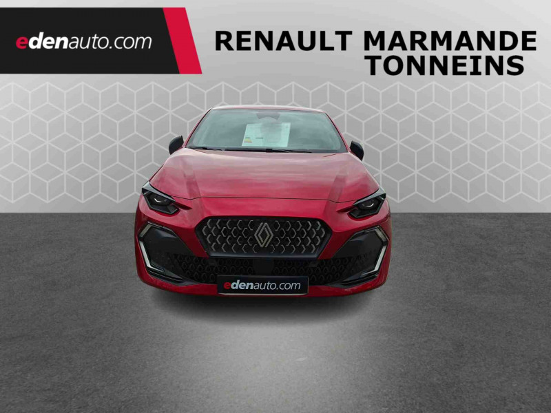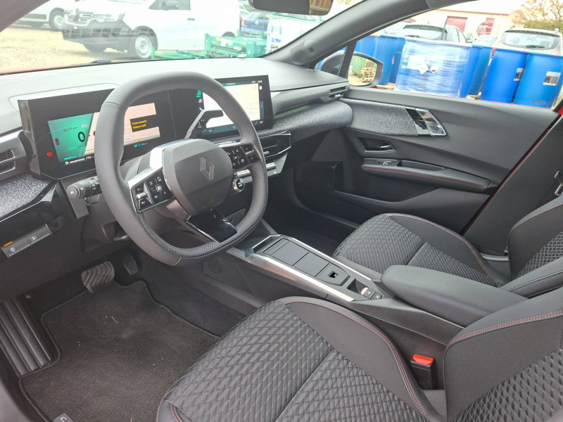 Alerte de vigilance conducteur avec détection de fatigue / Allumage automatique des phares avec commutation automatique des feux de route/ croisement / Antenne Requin / Avertisseur de distance de sécurité / Boîte de vitesse hybride multimode 6 rapports / Carte accès et démarrage mains-libres / Contrôle de la traction (TCS) / Détection intelligente des limitations de vitesse et prévention survitesse / Détections avec correction de trajectoire d'urgence / Eclairage d'ambiance 3 zones / Harmonie noire / Jantes alliage diamantées noir 16'' dynamo / Kit anti-crevaison / Maintenance connectée, incluse pendant 8 ans / Mise à jour système à distance, inclus pendant 5 ans / Multi-sense : choix du mode de conduite / My Safety switch (raccourci vers configuration personnalisée des aides à la conduite) / OpenR link 10,1'' : navigation, Google intégré, audio Arkamys Auditorium, 6 haut-parleurs / Pack advanced connectivity / Pack standard connectivity, via l'app My Renault / Réplication smartphone sans fil / Rétroviseur intérieur électrochrome avec mode jour/nuit automatique / Safety coach & safety score / Sans extension de connectivité / Sellerie textile 100% recyclé jacquard satin embossé noir, textile enduit, surpiqures rouges / Siège passager AV + 2 sièges AR avec technologie isofix® / Sièges AV réglables en profondeur et inclinaison / Tableau de bord avec écran d'instrumentation 10'' / Témoin et alerte de non-bouclage de ceinture de sécurité / Volant textile enduit grainé