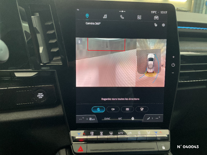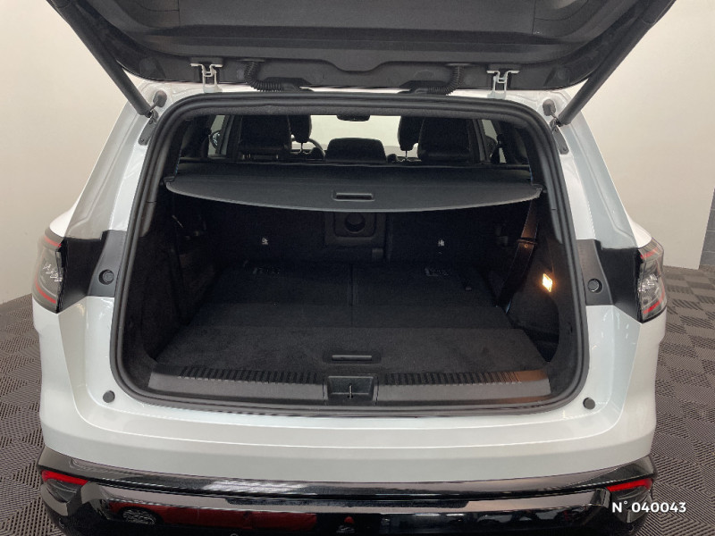 Seuil de portes / Sortie sécurisée des occupants / Assistance de conduite avec une remorque / 7 places / Banquette AR coulissante 1/3-2/3 avec dossier 40/20/40 / Pack Design esprit Alpine avec calandre à damiers / Prises au rang 3 / Système Multimédia openR link 12" : navigation, services Google, audio Arkamys Auditorium / Système ISOFIX sur siège passager & 2 places rang 2 / Alerte franchissement de ligne et assistant maintien dans la voie / Volant cuir & Alcantara et surpiqures bleu/blanc/rouge / Tableau de bord full numérique 12,3'' / Barres de toit longitudinales / Aide au parking AV/AR et latéral / Commutation automatique des feux de route/croisement / Multi-sense / Carte Renault accès et démarrage mains libres / Alerte de distance de sécurité / Freinage actif d'urgence urbain (piéton + cycliste + intersection) / Avertisseur d'angle mort et prévention sortie de voie en cas de dépassement / Frein de parking électrique avec fonction Auto-Hold / 4Control advanced / Feux AV full LED Adaptative Vision / Faux plancher de coffre / Hayon motorisé main libre / Miroir de surveillance enfants / Lumière d'ambiance personnalisable / Rétroviseur intérieur électrochrome sans cadre / Ciel de toit gris anthracite / Clignotants AR dynamiques / Feux AR à LED avec effet 3D / Jantes alliage 20" Daytona diamantées noir / Pack Design esprit Alpine intérieur / Sellerie mixte tissu carbone / alcantara avec surpiqures bleu / Avertisseur de sortie de stationnement en marche AR avec freinage d'urgence automatique