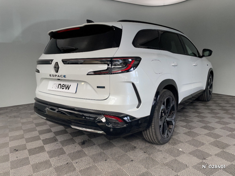 Multi-sense / Avertisseur de sortie de stationnement en marche AR avec freinage d'urgence automatique / Sortie sécurisée des occupants / Assistance de conduite avec une remorque / 7 places / Banquette AR coulissante 1/3-2/3 avec dossier 40/20/40 / Pack Design esprit Alpine avec calandre à damiers / Prises au rang 3 / Système Multimédia openR link 12" : navigation, services Google, audio Arkamys Auditorium / Système ISOFIX sur siège passager & 2 places rang 2 / Hayon motorisé main libre / Miroir de surveillance enfants / Lumière d'ambiance personnalisable / Rétroviseur intérieur électrochrome sans cadre / Ciel de toit gris anthracite / Clignotants AR dynamiques / Feux AR à LED avec effet 3D / Jantes alliage 20" Daytona diamantées noir / Pack Design esprit Alpine intérieur / Sellerie mixte tissu carbone / alcantara avec surpiqures bleu / Seuil de portes / Volant cuir & Alcantara et surpiqures bleu/blanc/rouge / Tableau de bord full numérique 12,3'' / Carte Renault accès et démarrage mains libres / Alerte de distance de sécurité / Freinage actif d'urgence urbain (piéton + cycliste + intersection) / Avertisseur d'angle mort et prévention sortie de voie en cas de dépassement / Frein de parking électrique avec fonction Auto-Hold / 4Control advanced / Feux AV full LED Adaptative Vision / Faux plancher de coffre / Barres de toit longitudinales / Aide au parking AV/AR et latéral / Commutation automatique des feux de route/croisement / Alerte franchissement de ligne et assistant maintien dans la voie