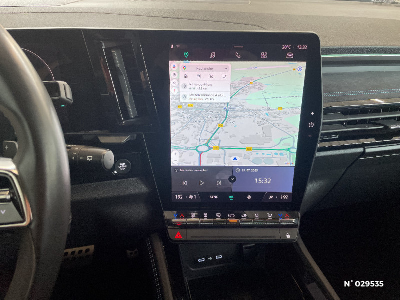 Frein de parking électrique avec fonction Auto-Hold / 4Control advanced / Feux AV full LED Adaptative Vision / Faux plancher de coffre / Hayon motorisé main libre / Miroir de surveillance enfants / Lumière d'ambiance personnalisable / Rétroviseur intérieur électrochrome sans cadre / Ciel de toit gris anthracite / Clignotants AR dynamiques / Feux AR à LED avec effet 3D / Jantes alliage 20" Daytona diamantées noir / Pack Design esprit Alpine intérieur / Sellerie mixte tissu carbone / alcantara avec surpiqures bleu / Seuil de portes / Volant cuir & Alcantara et surpiqures bleu/blanc/rouge / Tableau de bord full numérique 12,3'' / Alerte franchissement de ligne et assistant maintien dans la voie / Avertisseur de sortie de stationnement en marche AR avec freinage d'urgence automatique / Sortie sécurisée des occupants / Assistance de conduite avec une remorque / 7 places / Barres de toit longitudinales / Aide au parking AV/AR et latéral / Commutation automatique des feux de route/croisement / Multi-sense / Carte Renault accès et démarrage mains libres / Alerte de distance de sécurité / Freinage actif d'urgence urbain (piéton + cycliste + intersection) / Avertisseur d'angle mort et prévention sortie de voie en cas de dépassement / Banquette AR coulissante 1/3-2/3 avec dossier 40/20/40 / Pack Design esprit Alpine avec calandre à damiers / Prises au rang 3 / Système Multimédia openR link 12" : navigation, services Google, audio Arkamys Auditorium / Système ISOFIX sur siège passager & 2 places rang 2