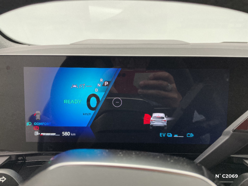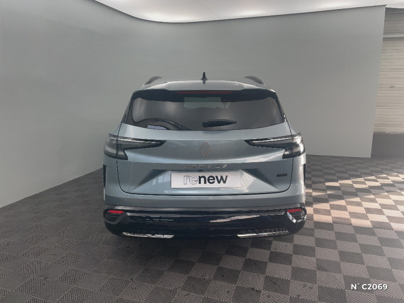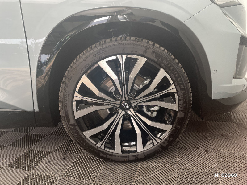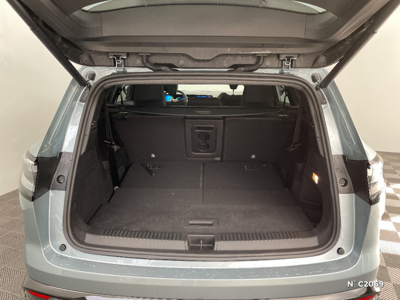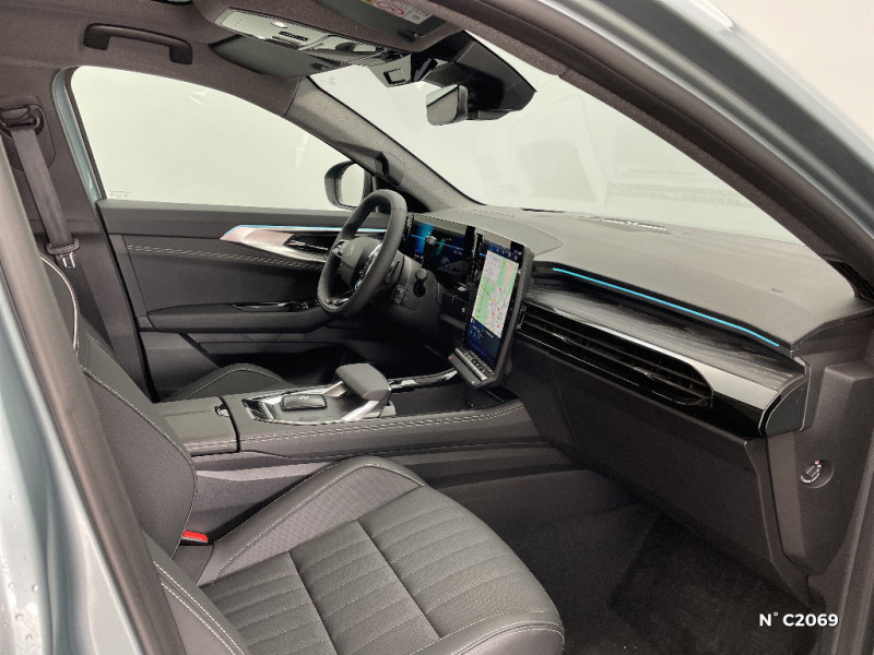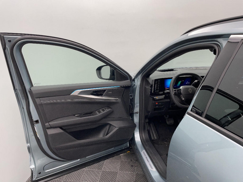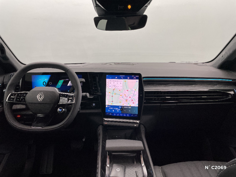 Avertisseur de sortie de stationnement en marche AR avec freinage d'urgence automatique / Banquette AR coulissante 1/3-2/3 avec dossier 40/20/40 / Barres de toit longitudinales / Boîte de vitesse hybride multimode 6 rapports / Caméra 3D vision 360° / Carte Renault accès et démarrage mains libres / Ciel de toit gris anthracite / Clignotants AR dynamiques / Intérieur Iconic gris / Jantes alliage 20" Effie diamantées noir / Lumière d'ambiance personnalisable / Maintenance connectée, incluse pendant 8 ans / Miroir de surveillance enfants / Mise à jour système (via firmware over the air FOTA), inclus pendant 5 ans / Multi-sense / My Safety switch (raccourci vers configuration personnalisée des aides à la conduite) / Notice d'utilisation digitale embarqué dans le système multimédia du véhicule / Pack connected driving, inclus pendant 5 ans / Pack contrôle à distance (via l¿application My Renault), inclus pendant 5 ans / Parking mains-libres (inclus aides au parking AV, AR et latérale) / Prédisposition éthylotest / Prises au rang 3 / Rétroviseur intérieur électrochrome sans cadre / Rétroviseurs extérieurs électriques à mémoire, dégivrants, rabattables automatiquement / Active driver assist régulateur de vitesse adaptatif intelligent + centrage dans la voie / Alerte de distance de sécurité / Alerte détection de fatigue / Alerte franchissement de ligne et assistant maintien dans la voie / Assistance de conduite avec une remorque / Avertisseur d'angle mort et prévention sortie de voie en cas de dépassement / Sellerie mixte tissu gris / textile enduit grainé clair / Seuil de portes / Sièges AV électriques à mémoire avec réglage et massage lombaire conducteur / Sortie sécurisée des occupants / Système de reconnaissance du conducteur / Système ISOFIX sur siège passager & 2 places rang 2 / Système Multimédia openR link 12" : navigation, services Google, audio Arkamys Auditorium / Tableau de bord full numérique 12,3'' / Volant chauffant / 4Control advanced / 7 places / Conduite prédictive (gestion de l¿énergie de la batterie) / Console de toit avec porte-lunettes / Contrôle de la traction (TCS) / Coussins grand confort sur appuie-tête AR gris sable clair / Détection intelligente des limitations de vitesse et prévention survitesse / Eclairage d'accompagnement au sol avec projection logo / Faux plancher de coffre / Feux AR à LED avec effet 3D / Feux LED adaptive vision (avec fonction antibrouillard intégrée) / Frein de parking électrique avec fonction Auto-Hold / Hayon motorisé main libre
