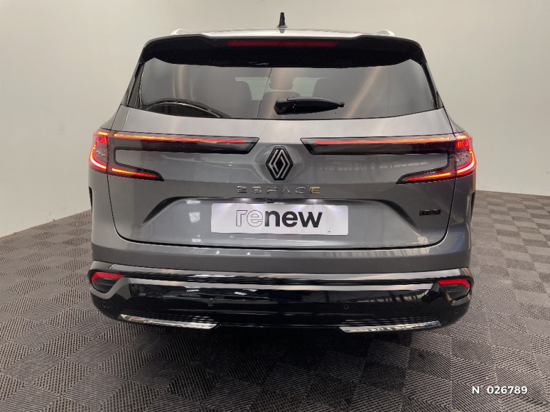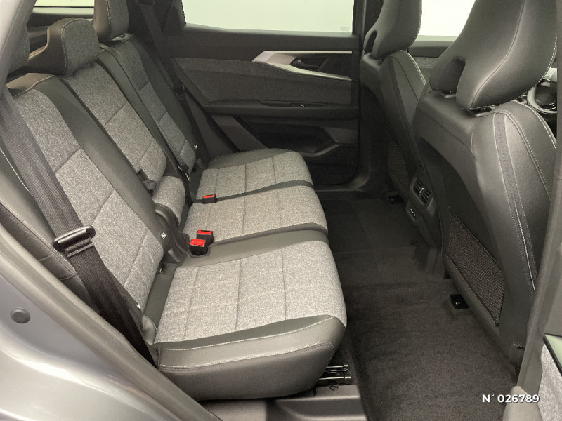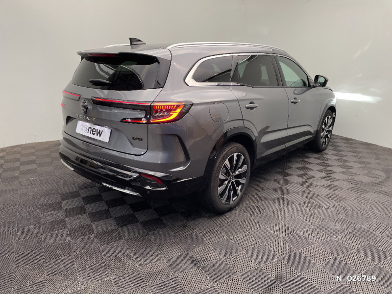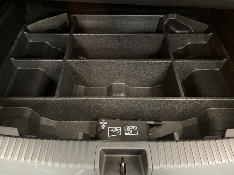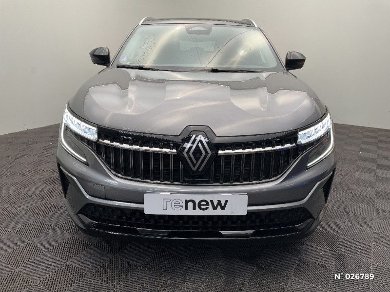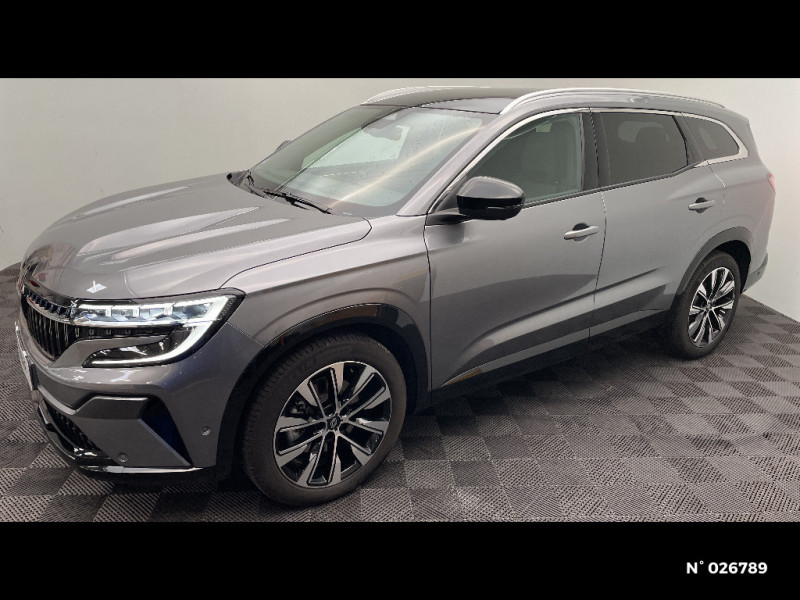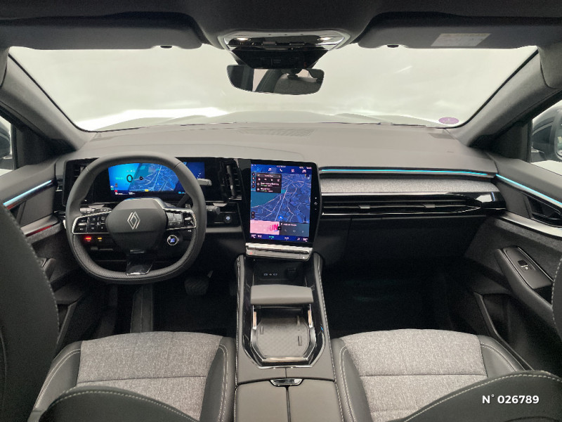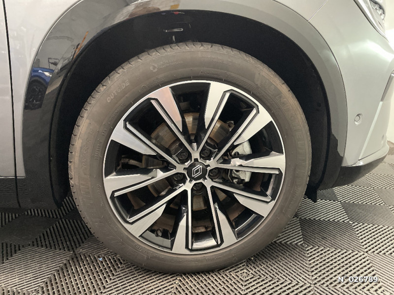 Aide au parking AV/AR et latéral / Commutation automatique des feux de route/croisement / Avertisseur de sortie de stationnement en marche AR avec freinage d'urgence automatique / Sortie sécurisée des occupants / Assistance de conduite avec une remorque / 7 places / Banquette AR coulissante 1/3-2/3 avec dossier 40/20/40 / Prises au rang 3 / Système Multimédia openR link 12" : navigation, services Google, audio Arkamys Auditorium / Système ISOFIX sur siège passager & 2 places rang 2 / Alerte détection de fatigue / Prédisposition éthylotest / Sellerie mixte tissu gris / textile enduit grainé noir / Détection intelligente des limitations de vitesse et prévention survitesse / My Safety switch (raccourci vers configuration personnalisée des aides à la conduite) / Barres de toit longitudinales / Alerte de distance de sécurité / Avertisseur d'angle mort et prévention sortie de voie en cas de dépassement / Frein de parking électrique avec fonction Auto-Hold / Feux AV full LED Adaptative Vision / Faux plancher de coffre / Hayon motorisé main libre / Miroir de surveillance enfants / Lumière d'ambiance personnalisable / Rétroviseur intérieur électrochrome sans cadre / Ciel de toit gris anthracite / Jantes alliage 19" Komah diamantées noir / Tableau de bord full numérique 12,3'' / Multi-sense / Carte Renault accès et démarrage mains libres / Alerte franchissement de ligne et assistant maintien dans la voie