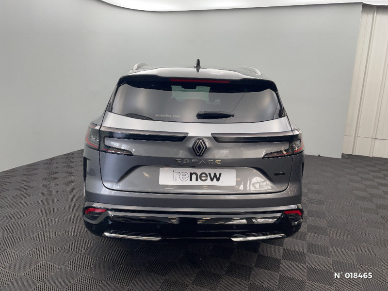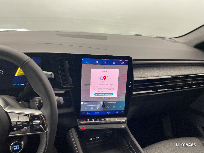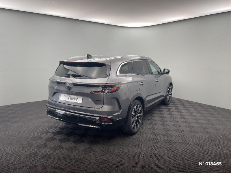Aide au parking AV/AR et latéral / Commutation automatique des feux de route/croisement / Multi-sense / Carte Renault accès et démarrage mains libres / Faux plancher de coffre / Miroir de surveillance enfants / Lumière d'ambiance personnalisable / Rétroviseur intérieur électrochrome sans cadre / Ciel de toit gris anthracite / Jantes alliage 19" Komah diamantées noir / Tableau de bord full numérique 12,3'' / Alerte franchissement de ligne et assistant maintien dans la voie / Avertisseur de sortie de stationnement en marche AR avec freinage d'urgence automatique / Sortie sécurisée des occupants / Alerte de distance de sécurité / Avertisseur d'angle mort et prévention sortie de voie en cas de dépassement / Frein de parking électrique avec fonction Auto-Hold / Feux AV full LED Adaptative Vision / Barres de toit longitudinales / Assistance de conduite avec une remorque / 7 places / Banquette AR coulissante 1/3-2/3 avec dossier 40/20/40 / Prises au rang 3 / Système Multimédia openR link 12" : navigation, services Google, audio Arkamys Auditorium / Système ISOFIX sur siège passager & 2 places rang 2 / Alerte détection de fatigue / Prédisposition éthylotest / Sellerie mixte tissu gris / textile enduit grainé noir / Détection intelligente des limitations de vitesse et prévention survitesse / My Safety switch (raccourci vers configuration personnalisée des aides à la conduite) / Contrôle de la traction (TCS) / Boîte de vitesse automatique 4 rapports