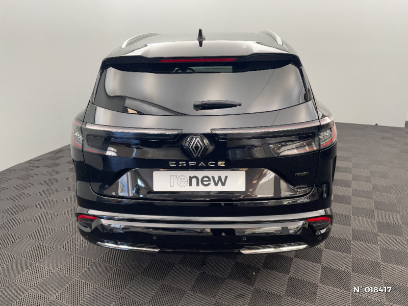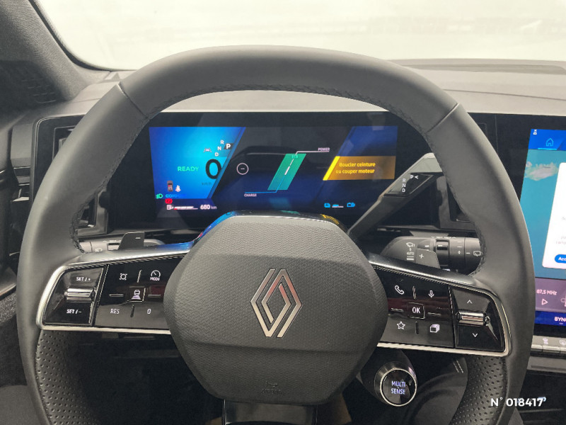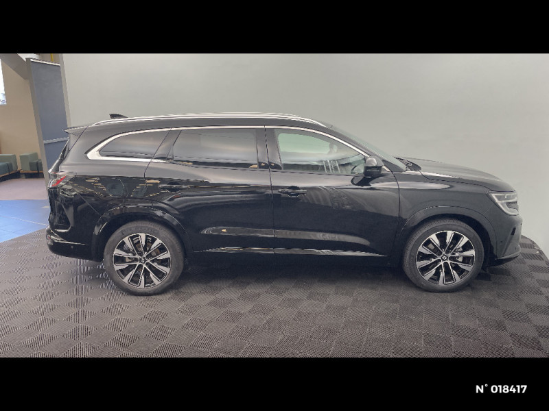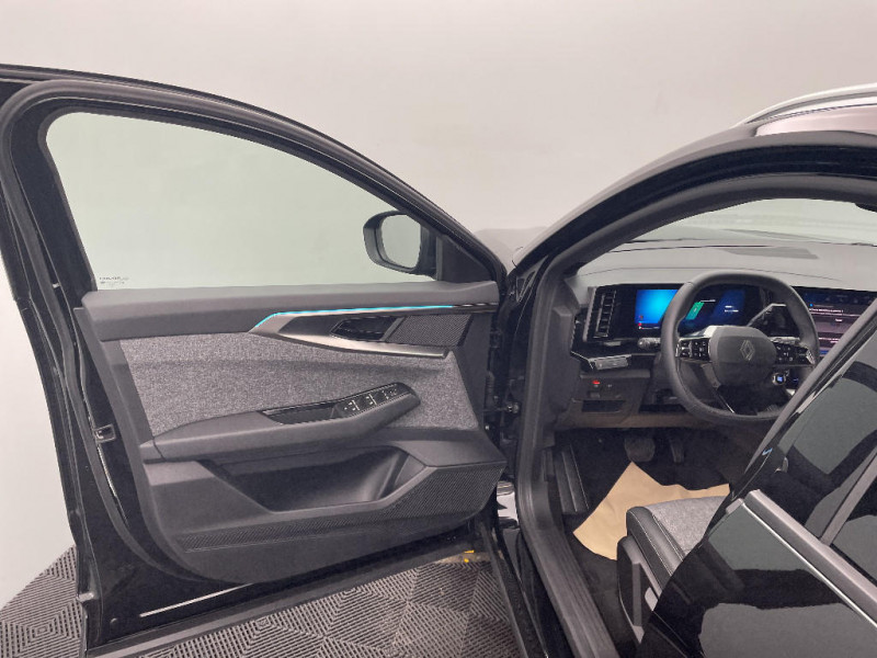 Barres de toit longitudinales / Aide au parking AV/AR et latéral / Commutation automatique des feux de route/croisement / Multi-sense / Système Multimédia openR link 12" : navigation, services Google, audio Arkamys Auditorium / Système ISOFIX sur siège passager & 2 places rang 2 / Alerte détection de fatigue / Prédisposition éthylotest / Sellerie mixte tissu gris / textile enduit grainé noir / Détection intelligente des limitations de vitesse et prévention survitesse / My Safety switch (raccourci vers configuration personnalisée des aides à la conduite) / Contrôle de la traction (TCS) / Boîte de vitesse automatique 4 rapports / Lumière d'ambiance personnalisable / Rétroviseur intérieur électrochrome sans cadre / Jantes alliage 19" Komah diamantées noir / Tableau de bord full numérique 12,3'' / Alerte franchissement de ligne et assistant maintien dans la voie / Avertisseur de sortie de stationnement en marche AR avec freinage d'urgence automatique / Sortie sécurisée des occupants / Assistance de conduite avec une remorque / 7 places / Banquette AR coulissante 1/3-2/3 avec dossier 40/20/40 / Ciel de toit gris anthracite / Prises au rang 3 / Carte Renault accès et démarrage mains libres / Alerte de distance de sécurité / Avertisseur d'angle mort et prévention sortie de voie en cas de dépassement / Frein de parking électrique avec fonction Auto-Hold / Feux AV full LED Adaptative Vision / Faux plancher de coffre / Miroir de surveillance enfants