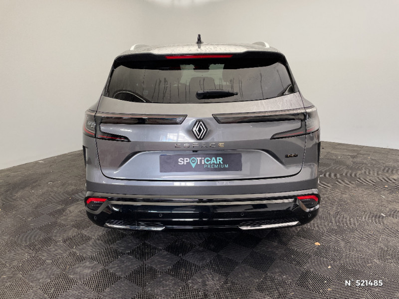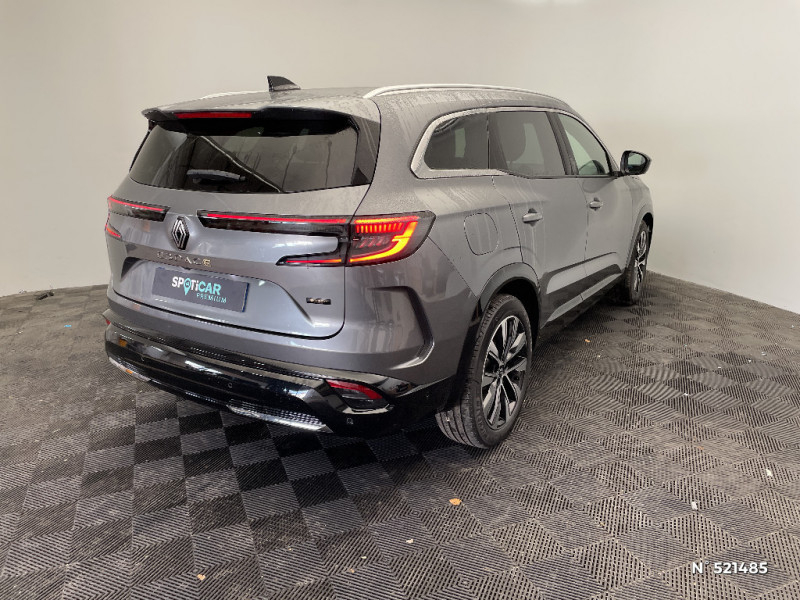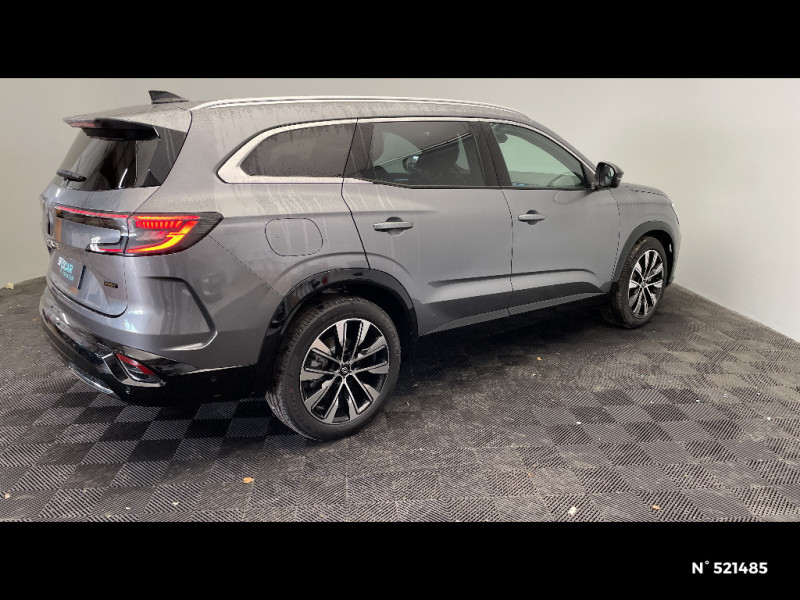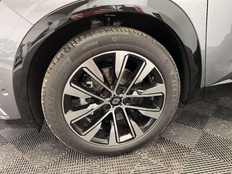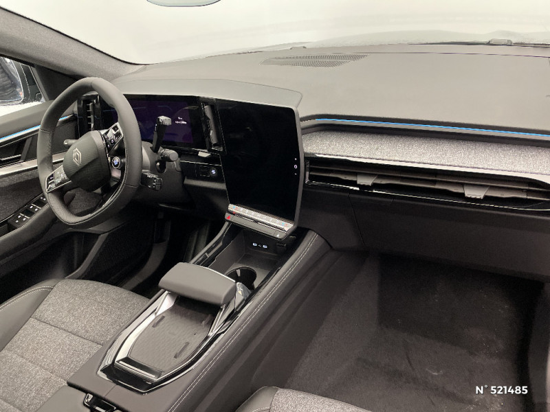 Alerte détection de fatigue / Prédisposition éthylotest / Barres de toit longitudinales / Système Multimédia openR link 12" : navigation, services Google, audio Arkamys Auditorium / Système ISOFIX sur siège passager & 2 places rang 2 / Avertisseur d'angle mort et prévention sortie de voie en cas de dépassement / Multi-sense / Sellerie mixte tissu gris / textile enduit grainé noir / Alerte de distance de sécurité / Prises au rang 3 / 7 places / Carte Renault accès et démarrage mains libres / Rétroviseur intérieur électrochrome sans cadre / Ciel de toit gris anthracite / Jantes alliage 19" Komah diamantées noir / Aide au parking AV/AR et latéral / Feux AV full LED Adaptative Vision / Faux plancher de coffre / Miroir de surveillance enfants / Lumière d'ambiance personnalisable / Banquette AR coulissante 1/3-2/3 avec dossier 40/20/40 / Avertisseur de sortie de stationnement en marche AR avec freinage d'urgence automatique / Sortie sécurisée des occupants / Commutation automatique des feux de route/croisement / Frein de parking électrique avec fonction Auto-Hold / Tableau de bord full numérique 12,3'' / Alerte franchissement de ligne et assistant maintien dans la voie / Détection intelligente des limitations de vitesse et prévention survitesse / My Safety switch (raccourci vers configuration personnalisée des aides à la conduite) / Contrôle de la traction (TCS) / Boîte de vitesse automatique 4 rapports / Assistance de conduite avec une remorque