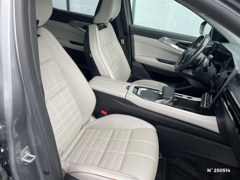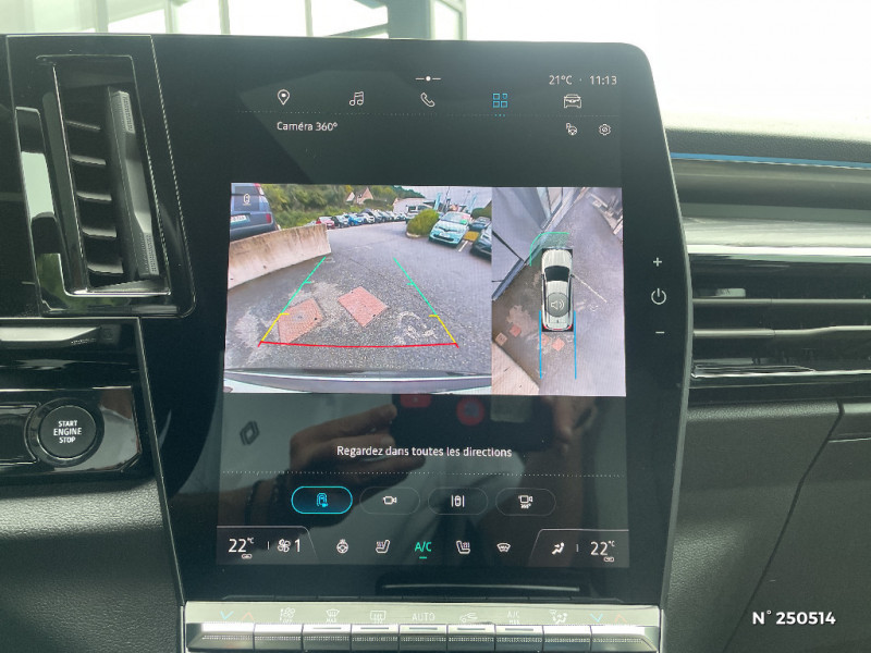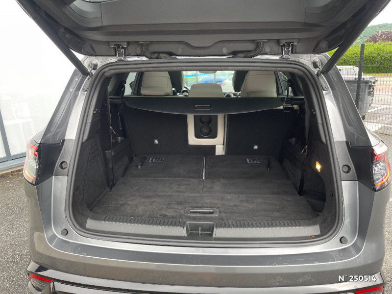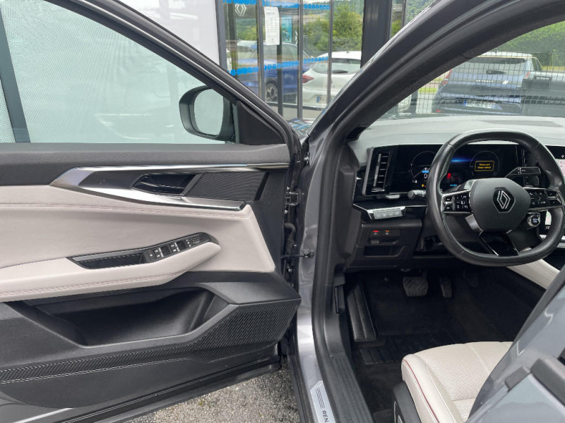 Barres de toit longitudinales / Commutation automatique des feux de route/croisement / Multi-sense / Carte Renault accès et démarrage mains libres / Volant chauffant / Alerte de distance de sécurité / Freinage actif d'urgence urbain (piéton + cycliste + intersection) / Avertisseur d'angle mort et prévention sortie de voie en cas de dépassement / Frein de parking électrique avec fonction Auto-Hold / 4Control advanced / Caméra 3D vision 360° / Feux AV full LED Adaptative Vision / Appuie-têtes AV grand confort / Faux plancher de coffre / Hayon motorisé main libre / Miroir de surveillance enfants / Lumière d'ambiance personnalisable / Pare-brise chauffant / Rétroviseur intérieur électrochrome sans cadre / Rétroviseurs extérieurs électriques à mémoire, dégivrants, rabattables automatiquement / Ciel de toit gris anthracite / Clignotants AR dynamiques / Feux AR à LED avec effet 3D / Jantes alliage 20" Effie diamantées noir / Seuil de portes / Tableau de bord full numérique 12,3'' / Alerte franchissement de ligne et assistant maintien dans la voie / Avertisseur de sortie de stationnement en marche AR avec freinage d'urgence automatique / Sortie sécurisée des occupants / Assistance de conduite avec une remorque / Parking mains-libres (inclus aides au parking AV, AR et latérale) / 7 places / Banquette AR coulissante 1/3-2/3 avec dossier 40/20/40 / Sièges AV électriques à mémoire avec réglage et massage lombaire conducteur / Eclairage d'accompagnement au sol avec projection logo / Sellerie cuir gris sable clair perforée avec surpiqures et joncs ambrés / Prises au rang 3 / Système Multimédia openR link 12" : navigation, services Google, audio Arkamys Auditorium / Système ISOFIX sur siège passager & 2 places rang 2 / Coussins grand confort sur appuie-tête AR gris sable clair