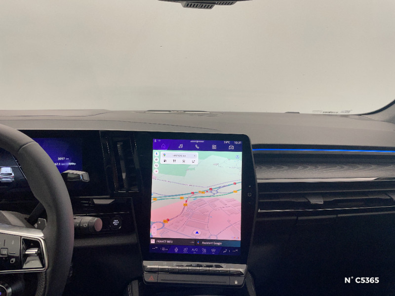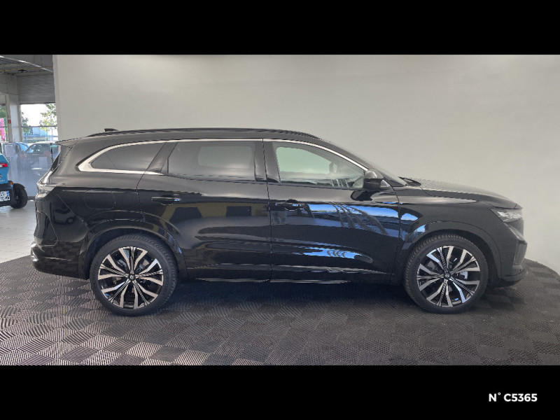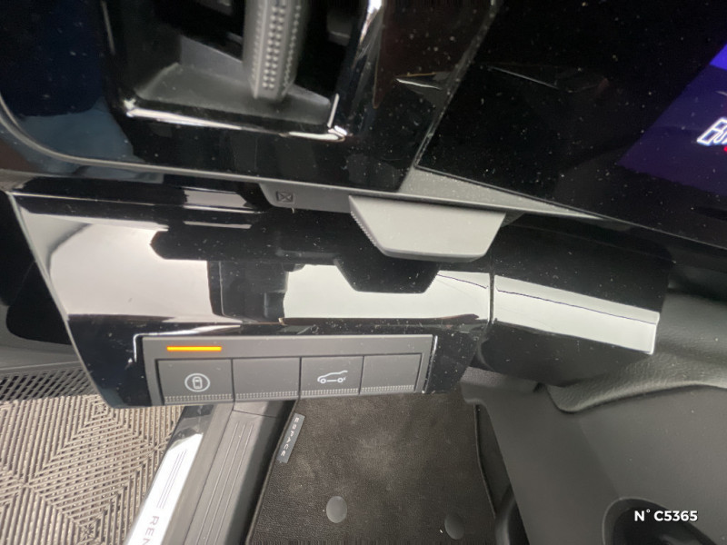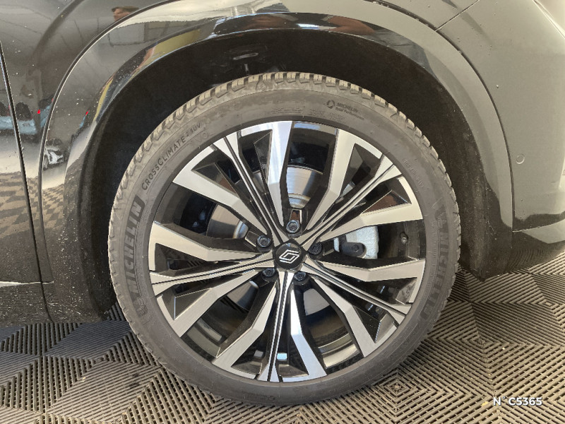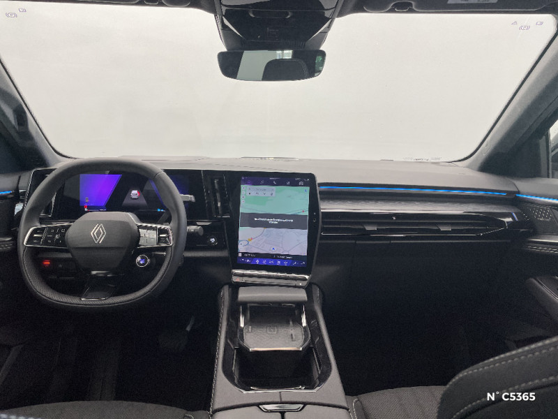 Rétroviseurs extérieurs électriques à mémoire, dégivrants, rabattables automatiquement / Sellerie mixte tissu gris / textile enduit grainé clair / Seuil de portes / Sièges AV électriques à mémoire avec réglage et massage lombaire conducteur / Sortie sécurisée des occupants / Système de reconnaissance du conducteur / Système ISOFIX sur siège passager & 2 places rang 2 / Système Multimédia openR link 12" : navigation, services Google, audio Arkamys Auditorium / Tableau de bord full numérique 12,3'' / Volant chauffant / 4Control advanced / 7 places / Jantes alliage 20" Effie diamantées noir / Lumière d'ambiance personnalisable / Maintenance connectée, incluse pendant 8 ans / Miroir de surveillance enfants / Mise à jour système (via firmware over the air FOTA), inclus pendant 5 ans / Multi-sense / My Safety switch (raccourci vers configuration personnalisée des aides à la conduite) / Notice d'utilisation digitale embarqué dans le système multimédia du véhicule / Pack connected driving, inclus pendant 5 ans / Pack contrôle à distance (via l¿application My Renault), inclus pendant 5 ans / Parking mains-libres (inclus aides au parking AV, AR et latérale) / Prédisposition éthylotest / Prises au rang 3 / Rétroviseur intérieur électrochrome sans cadre / Eclairage d'accompagnement au sol avec projection logo / Faux plancher de coffre / Feux AR à LED avec effet 3D / Feux LED adaptive vision (avec fonction antibrouillard intégrée) / Frein de parking électrique avec fonction Auto-Hold / Hayon motorisé mains libres / Intérieur Iconic gris / Détection intelligente des limitations de vitesse et prévention survitesse / Active driver assist régulateur de vitesse adaptatif intelligent + centrage dans la voie / Alerte de distance de sécurité / Alerte détection de fatigue / Alerte franchissement de ligne et assistant maintien dans la voie / Assistance de conduite avec une remorque / Avertisseur d'angle mort et prévention sortie de voie en cas de dépassement / Avertisseur de sortie de stationnement en marche AR avec freinage d'urgence automatique / Banquette AR coulissante 1/3-2/3 avec dossier 40/20/40 / Barres de toit longitudinales / Boîte de vitesse hybride multimode 6 rapports / Caméra 3D vision 360° / Carte Renault accès et démarrage mains libres / Ciel de toit gris anthracite / Clignotants AR dynamiques / Conduite prédictive (gestion de l¿énergie de la batterie) / Console de toit avec porte-lunettes / Contrôle de la traction (TCS)