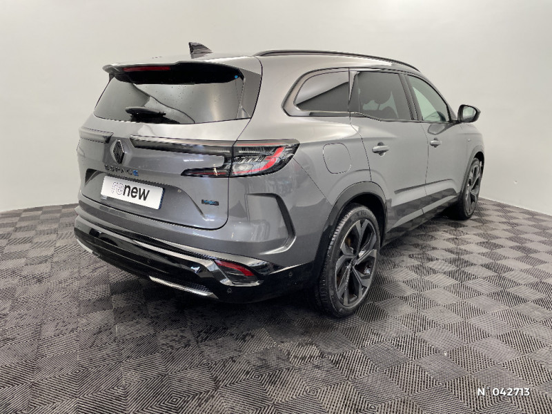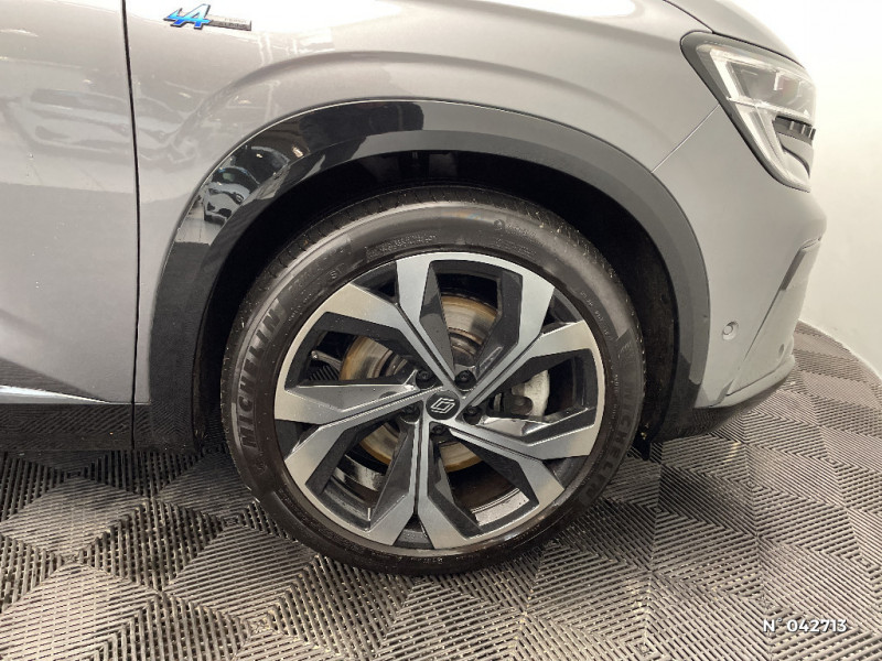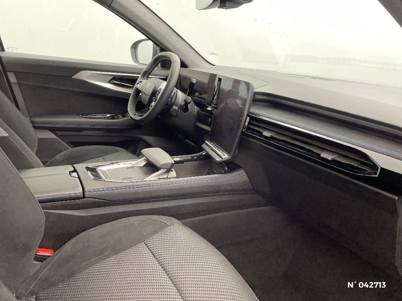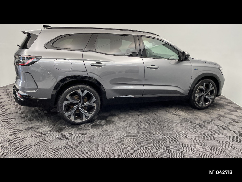 Alerte franchissement de ligne et assistant maintien dans la voie / Avertisseur de sortie de stationnement en marche AR avec freinage d'urgence automatique / Sortie sécurisée des occupants / Assistance de conduite avec une remorque / 7 places / Banquette AR coulissante 1/3-2/3 avec dossier 40/20/40 / Pack Design esprit Alpine avec calandre à damiers / Prises au rang 3 / Multi-sense / Carte Renault accès et démarrage mains libres / Alerte de distance de sécurité / Avertisseur d'angle mort et prévention sortie de voie en cas de dépassement / Frein de parking électrique avec fonction Auto-Hold / 4Control advanced / Feux AV full LED Adaptative Vision / Faux plancher de coffre / Hayon motorisé main libre / Miroir de surveillance enfants / Lumière d'ambiance personnalisable / Rétroviseur intérieur électrochrome sans cadre / Ciel de toit gris anthracite / Clignotants AR dynamiques / Feux AR à LED avec effet 3D / Jantes alliage 20" Daytona diamantées noir / Pack Design esprit Alpine intérieur / Sellerie mixte tissu carbone / alcantara avec surpiqures bleu / Seuil de portes / Tableau de bord full numérique 12,3'' / Commutation automatique des feux de route/croisement / Boîte de vitesse automatique 4 rapports / Système Multimédia openR link 12" : navigation, services Google, audio Arkamys Auditorium / Système ISOFIX sur siège passager & 2 places rang 2 / Alerte détection de fatigue / Prédisposition éthylotest / Détection intelligente des limitations de vitesse et prévention survitesse / My Safety switch (raccourci vers configuration personnalisée des aides à la conduite) / Contrôle de la traction (TCS) / Aide au parking AV/AR et latéral / Barres de toit longitudinales