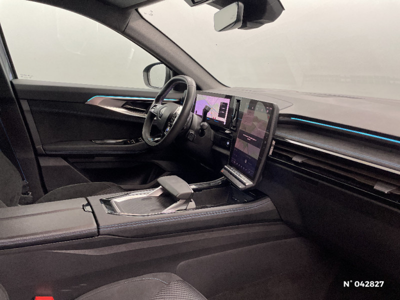 Clignotants AR dynamiques / Feux AR à LED avec effet 3D / Jantes alliage 20" Daytona diamantées noir / Pack Design esprit Alpine intérieur / Sellerie mixte tissu carbone / alcantara avec surpiqures bleu / Seuil de portes / Volant cuir & Alcantara et surpiqures bleu/blanc/rouge / Tableau de bord full numérique 12,3'' / Alerte franchissement de ligne et assistant maintien dans la voie / Avertisseur de sortie de stationnement en marche AR avec freinage d'urgence automatique / Sortie sécurisée des occupants / Assistance de conduite avec une remorque / 7 places / Banquette AR coulissante 1/3-2/3 avec dossier 40/20/40 / Pack Design esprit Alpine avec calandre à damiers / Prises au rang 3 / Système Multimédia openR link 12" : navigation, services Google, audio Arkamys Auditorium / Système ISOFIX sur siège passager & 2 places rang 2 / Barres de toit longitudinales / Aide au parking AV/AR et latéral / Commutation automatique des feux de route/croisement / Multi-sense / Carte Renault accès et démarrage mains libres / Alerte de distance de sécurité / Freinage actif d'urgence urbain (piéton + cycliste + intersection) / Avertisseur d'angle mort et prévention sortie de voie en cas de dépassement / Frein de parking électrique avec fonction Auto-Hold / 4Control advanced / Feux AV full LED Adaptative Vision / Faux plancher de coffre / Hayon motorisé main libre / Miroir de surveillance enfants / Lumière d'ambiance personnalisable / Rétroviseur intérieur électrochrome sans cadre / Ciel de toit gris anthracite