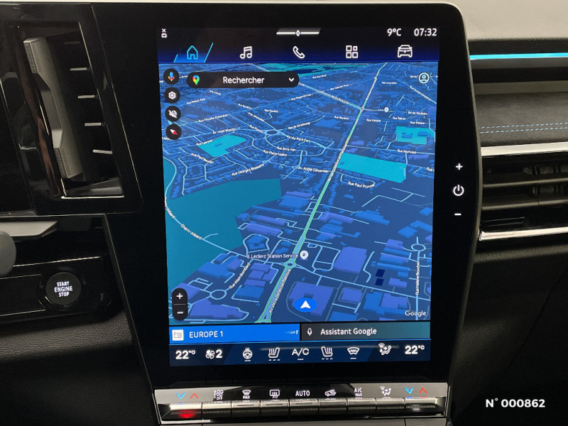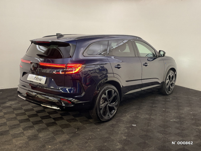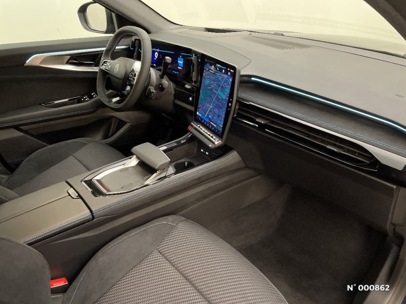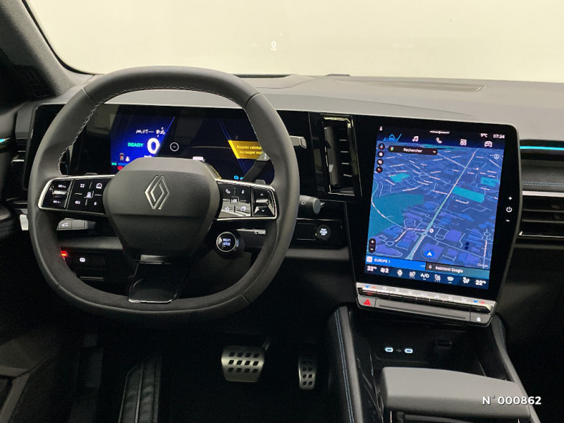 Avertisseur d'angle mort et prévention sortie de voie en cas de dépassement / Frein de parking électrique avec fonction Auto-Hold / 4Control advanced / Feux AV full LED Adaptative Vision / Faux plancher de coffre / Hayon motorisé main libre / Miroir de surveillance enfants / Lumière d'ambiance personnalisable / Rétroviseur intérieur électrochrome sans cadre / Ciel de toit gris anthracite / Clignotants AR dynamiques / Feux AR à LED avec effet 3D / Jantes alliage 20" Daytona diamantées noir / Pack Design esprit Alpine intérieur / Sellerie mixte tissu carbone / alcantara avec surpiqures bleu / Seuil de portes / Tableau de bord full numérique 12,3'' / Alerte franchissement de ligne et assistant maintien dans la voie / Avertisseur de sortie de stationnement en marche AR avec freinage d'urgence automatique / Sortie sécurisée des occupants / Assistance de conduite avec une remorque / 7 places / Banquette AR coulissante 1/3-2/3 avec dossier 40/20/40 / Pack Design esprit Alpine avec calandre à damiers / Prises au rang 3 / Système Multimédia openR link 12" : navigation, services Google, audio Arkamys Auditorium / Système ISOFIX sur siège passager & 2 places rang 2 / Alerte détection de fatigue / Prédisposition éthylotest / Détection intelligente des limitations de vitesse et prévention survitesse / My Safety switch (raccourci vers configuration personnalisée des aides à la conduite) / Intérieur Iconic gris / Contrôle de la traction (TCS) / Boîte de vitesse automatique 4 rapports / Barres de toit longitudinales / Aide au parking AV/AR et latéral / Commutation automatique des feux de route/croisement / Multi-sense / Carte Renault accès et démarrage mains libres / Alerte de distance de sécurité