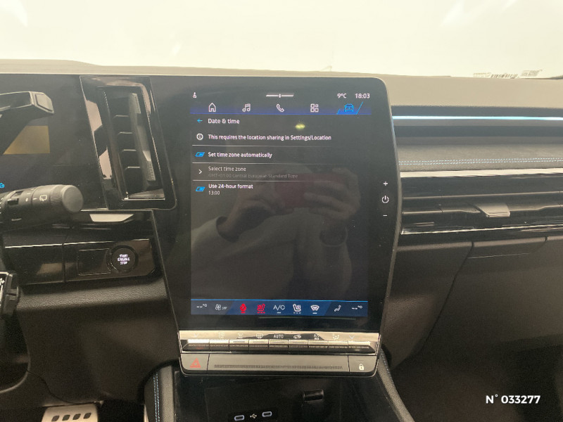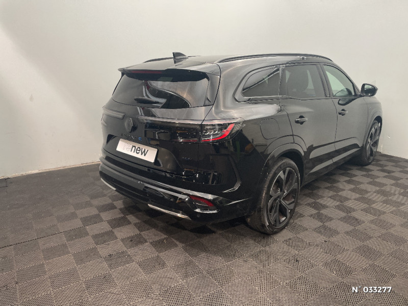 Avertisseur d'angle mort et prévention sortie de voie en cas de dépassement / 4Control advanced / Feux AV full LED Adaptative Vision / Faux plancher de coffre / Hayon motorisé main libre / Miroir de surveillance enfants / Lumière d'ambiance personnalisable / Rétroviseur intérieur électrochrome sans cadre / Ciel de toit gris anthracite / Clignotants AR dynamiques / Feux AR à LED avec effet 3D / Jantes alliage 20" Daytona diamantées noir / Pack Design esprit Alpine intérieur / Sellerie mixte tissu carbone / alcantara avec surpiqures bleu / Seuil de portes / Tableau de bord full numérique 12,3'' / Alerte franchissement de ligne et assistant maintien dans la voie / Avertisseur de sortie de stationnement en marche AR avec freinage d'urgence automatique / Sortie sécurisée des occupants / Assistance de conduite avec une remorque / 7 places / Banquette AR coulissante 1/3-2/3 avec dossier 40/20/40 / Pack Design esprit Alpine avec calandre à damiers / Prises au rang 3 / Système Multimédia openR link 12" : navigation, services Google, audio Arkamys Auditorium / Système ISOFIX sur siège passager & 2 places rang 2 / Alerte détection de fatigue / Prédisposition éthylotest / Détection intelligente des limitations de vitesse et prévention survitesse / My Safety switch (raccourci vers configuration personnalisée des aides à la conduite) / Contrôle de la traction (TCS) / Boîte de vitesse automatique 4 rapports / Barres de toit longitudinales / Aide au parking AV/AR et latéral / Commutation automatique des feux de route/croisement / Multi-sense / Carte Renault accès et démarrage mains libres / Alerte de distance de sécurité / Frein de parking électrique avec fonction Auto-Hold