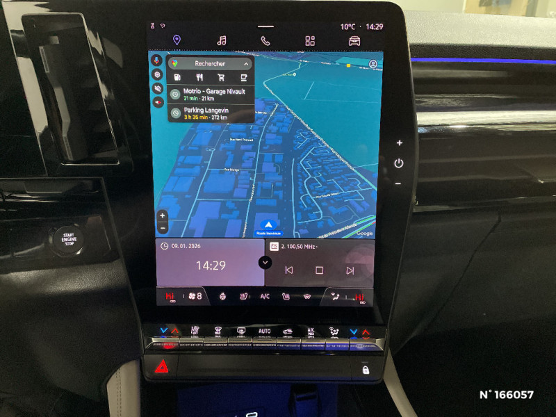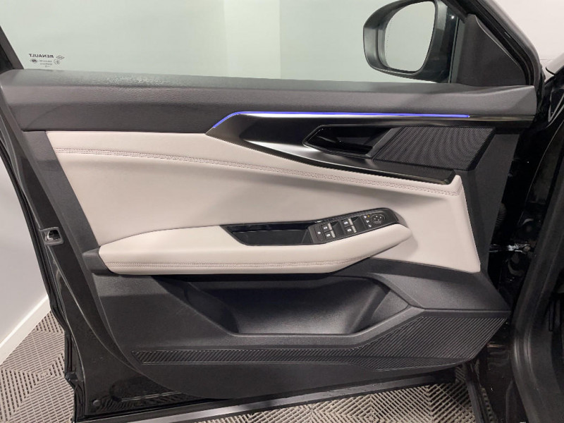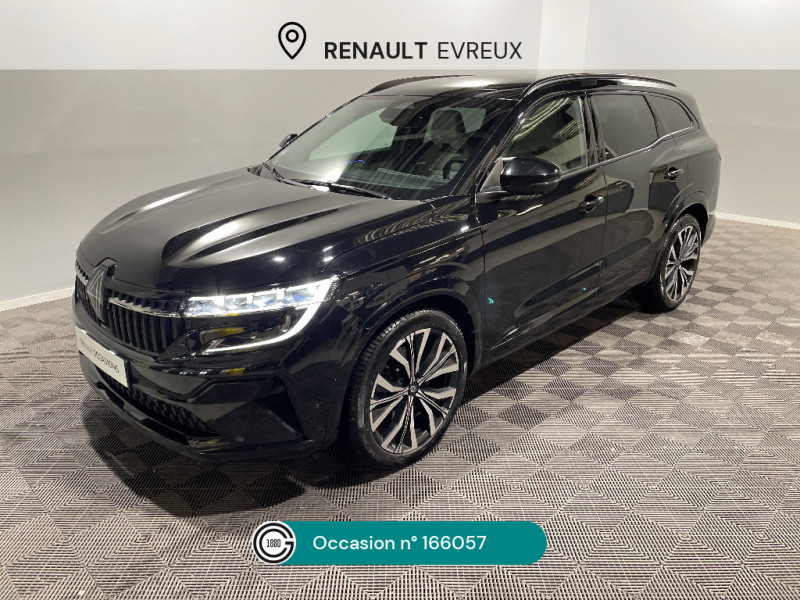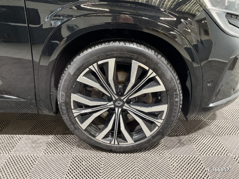 Barres de toit longitudinales / Hayon motorisé main libre / Multi-sense / Carte Renault accès et démarrage mains libres / Volant chauffant / Sellerie cuir gris sable clair perforée avec surpiqures et joncs ambrés / Prises au rang 3 / Système Multimédia openR link 12" : navigation, services Google, audio Arkamys Auditorium / Système ISOFIX sur siège passager & 2 places rang 2 / Coussins grand confort sur appuie-tête AR gris sable clair / Miroir de surveillance enfants / Lumière d'ambiance personnalisable / Pare-brise chauffant / Rétroviseur intérieur électrochrome sans cadre / Rétroviseurs extérieurs électriques à mémoire, dégivrants, rabattables automatiquement / Ciel de toit gris anthracite / Clignotants AR dynamiques / Feux AR à LED avec effet 3D / Jantes alliage 20" Effie diamantées noir / Seuil de portes / Tableau de bord full numérique 12,3'' / Alerte franchissement de ligne et assistant maintien dans la voie / Avertisseur de sortie de stationnement en marche AR avec freinage d'urgence automatique / Sortie sécurisée des occupants / Classe energetique 1 / Assistance de conduite avec une remorque / Parking mains-libres (inclus aides au parking AV, AR et latérale) / 7 places / Banquette AR coulissante 1/3-2/3 avec dossier 40/20/40 / Sièges AV électriques à mémoire avec réglage et massage lombaire conducteur / Eclairage d'accompagnement au sol avec projection logo / Alerte de distance de sécurité / Freinage actif d'urgence urbain (piéton + cycliste + intersection) / Avertisseur d'angle mort et prévention sortie de voie en cas de dépassement / Frein de parking électrique avec fonction Auto-Hold / 4Control advanced / Caméra 3D vision 360° / Feux AV full LED Adaptative Vision / Appuie-têtes AV grand confort / Faux plancher de coffre / Commutation automatique des feux de route/croisement