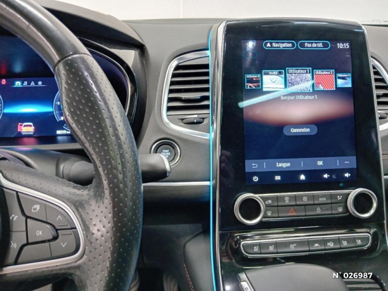 Surtapis d'habitacle Initiale Paris / Ambiance lumineuse / Modularité One-Touch / Alerte détection de fatigue / Energy Smart Management / Lève-vitres AR anti-pincement / Détection active du véhicule AR / Feux adaptatifs LED Matrix Vision / Accueil ext lumineux avec éclairage aux poignées de portes / Pare-Brise Panoramique Lumière / Freinage actif d'urgence Inter Urbain / City / Piétons / Planche de Bord Noir Titane / Rétroviseur intérieur électrochrome sans bord / EASY LINK 9,3'' avec Navigation connectée compatible Android Auto(TM), Apple Carplay(TM) / Vitres latérales AR et lunette AR surteintées / Kit de gonflage et de réparation / Commutation automatique des feux de route/croisement / Tableau de bord avec écran numérique et personnalisable 10" / Assistant Trafic et Autoroute (conduite autonome niveau 1) / Châssis 4-CONTROL (à 4 roues directrices) / Peinture opaque / Indicateur de changement de vitesse / Jantes Alliage 19" Initiale Paris / Hayon motorisé mains libres / Renault Multi-Sense (choix de modes de conduite) / Amortissement Piloté / Alerte Distance Sécurité / Stores pare-soleil sur portes AR / Alerte d'oubli de ceinture de sécurité / Sellerie cuir Nappa Noir Titane / Prise 12V à chaque rang / Rétroviseurs extérieur dégivrant, réglables et rabattables électriquement avec indexation marche AR