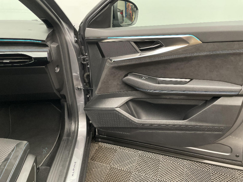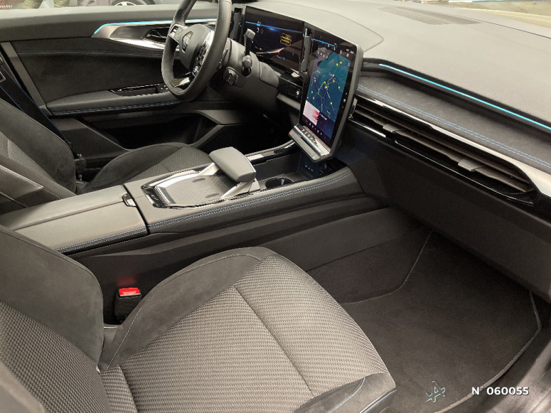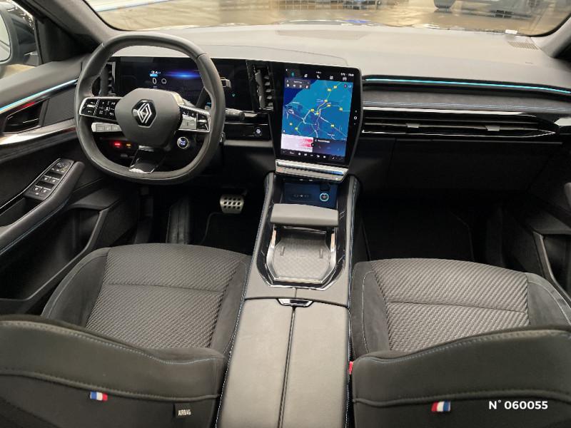Prises au rang 3 / Système Multimédia openR link 12" : navigation, services Google, audio Arkamys Auditorium / Système ISOFIX sur siège passager & 2 places rang 2 / Avertisseur de sortie de stationnement en marche AR avec freinage d'urgence automatique / Sortie sécurisée des occupants / Assistance de conduite avec une remorque / 7 places / Banquette AR coulissante 1/3-2/3 avec dossier 40/20/40 / Aide au parking AV/AR et latéral / Commutation automatique des feux de route/croisement / Multi-sense / Carte Renault accès et démarrage mains libres / Alerte de distance de sécurité / Freinage actif d'urgence urbain (piéton + cycliste + intersection) / Avertisseur d'angle mort et prévention sortie de voie en cas de dépassement / Frein de parking électrique avec fonction Auto-Hold / 4Control advanced / Feux AV full LED Adaptative Vision / Faux plancher de coffre / Hayon motorisé main libre / Miroir de surveillance enfants / Lumière d'ambiance personnalisable / Rétroviseur intérieur électrochrome sans cadre / Barres de toit longitudinales / Pack Design esprit Alpine avec calandre à damiers / Ciel de toit gris anthracite / Clignotants AR dynamiques / Feux AR à LED avec effet 3D / Jantes alliage 20" Daytona diamantées noir / Pack Design esprit Alpine intérieur / Sellerie mixte tissu carbone / alcantara avec surpiqures bleu / Seuil de portes / Volant cuir & Alcantara et surpiqures bleu/blanc/rouge / Tableau de bord full numérique 12,3'' / Alerte franchissement de ligne et assistant maintien dans la voie