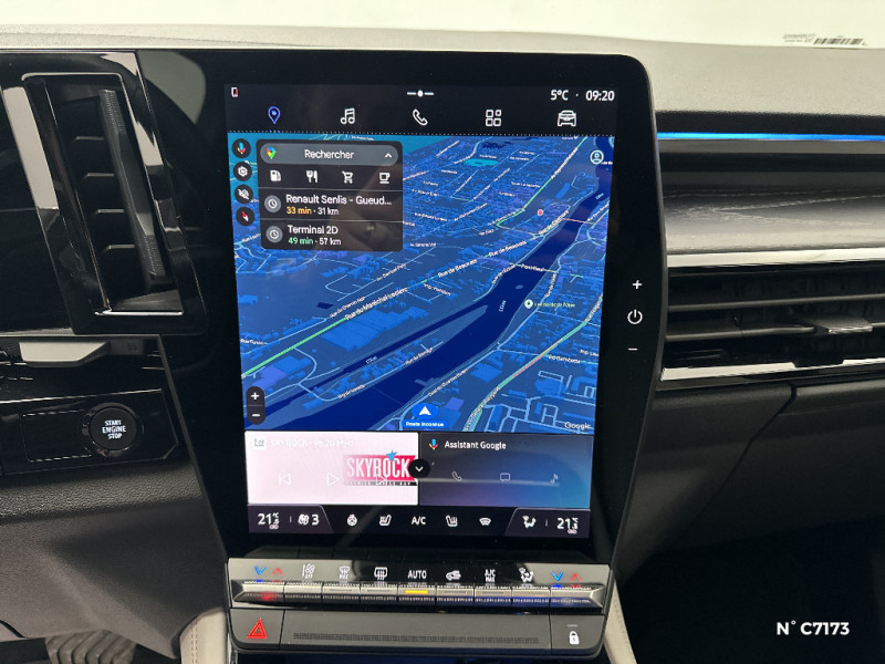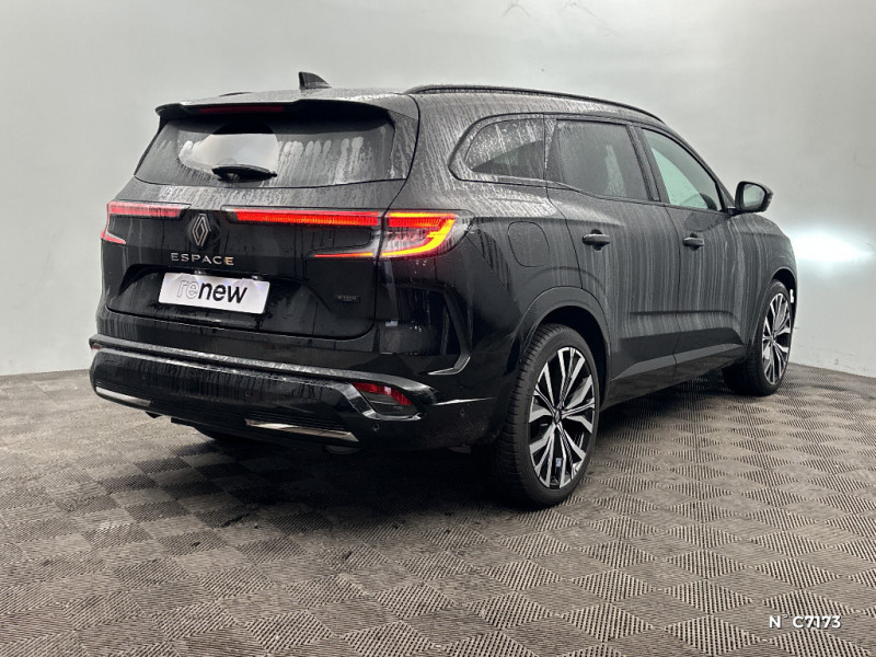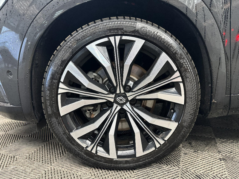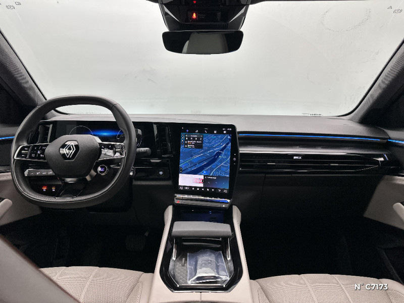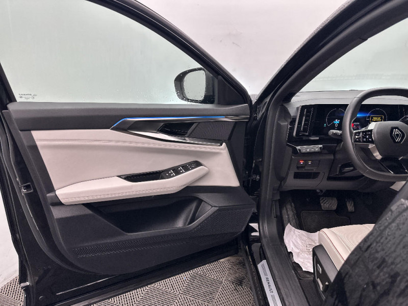 Rétroviseur intérieur électrochrome sans cadre / Rétroviseurs extérieurs électriques à mémoire, dégivrants, rabattables automatiquement / Alerte de distance de sécurité / Volant chauffant / 4Control advanced / 7 places / Hayon motorisé mains libres / Jantes alliage 20" Effie diamantées noir / Alerte franchissement de ligne et assistant maintien dans la voie / Appuie-têtes AV grand confort / Assistance de conduite avec une remorque / Avertisseur d'angle mort et prévention sortie de voie en cas de dépassement / Avertisseur de sortie de stationnement en marche AR avec freinage d'urgence automatique / Banquette AR coulissante 1/3-2/3 avec dossier 40/20/40 / Barres de toit longitudinales / Caméra 3D vision 360° / Ciel de toit gris anthracite / Classe energetique 1 / Carte Renault accès et démarrage mains libres / Clignotants AR dynamiques / Commutation automatique des feux de route/croisement / Coussins grand confort sur appuie-tête AR gris sable clair / Eclairage d'accompagnement au sol avec projection logo / Faux plancher de coffre / Feux AR à LED avec effet 3D / Feux AV full LED Adaptative Vision / Frein de parking électrique avec fonction Auto-Hold / Freinage actif d'urgence urbain (piéton + cycliste + intersection) / Lumière d'ambiance personnalisable / Miroir de surveillance enfants / Multi-sense / Pare-brise chauffant / Parking mains-libres (inclus aides au parking AV, AR et latérale) / Prises au rang 3 / Sellerie cuir gris sable clair perforée avec surpiqûres et joncs ambrés / Seuil de portes / Sièges AV électriques à mémoire avec réglage et massage lombaire conducteur / Sortie sécurisée des occupants / Système ISOFIX sur siège passager & 2 places rang 2 / Système Multimédia openR link 12" : navigation, services Google, audio Arkamys Auditorium / Tableau de bord full numérique 12,3''