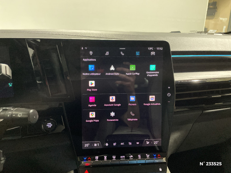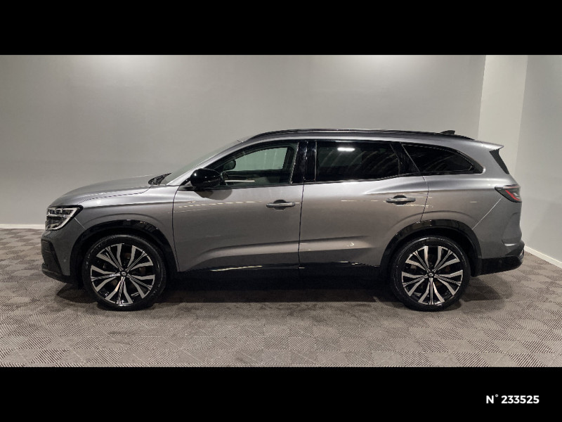 Alerte franchissement de ligne et assistant maintien dans la voie / Appuie-têtes AV grand confort / Assistance de conduite avec une remorque / Avertisseur d'angle mort et prévention sortie de voie en cas de dépassement / Avertisseur de sortie de stationnement en marche AR avec freinage d'urgence automatique / Banquette AR coulissante 1/3-2/3 avec dossier 40/20/40 / Barres de toit longitudinales / Caméra 3D vision 360° / Carte Renault accès et démarrage mains libres / Ciel de toit gris anthracite / Classe energetique 1 / Clignotants AR dynamiques / Commutation automatique des feux de route/croisement / Coussins grand confort sur appuie-tête AR gris sable clair / Eclairage d'accompagnement au sol avec projection logo / Faux plancher de coffre / Feux AR à LED avec effet 3D / Feux AV full LED Adaptative Vision / Frein de parking électrique avec fonction Auto-Hold / Freinage actif d'urgence urbain (piéton + cycliste + intersection) / Hayon motorisé main libre / Jantes alliage 20" Effie diamantées noir / Lumière d'ambiance personnalisable / Miroir de surveillance enfants / Multi-sense / Pare-brise chauffant / Parking mains-libres (inclus aides au parking AV, AR et latérale) / Prises au rang 3 / Rétroviseur intérieur électrochrome sans cadre / Rétroviseurs extérieurs électriques à mémoire, dégivrants, rabattables automatiquement / Sellerie cuir gris sable clair perforée avec surpiqûres et joncs ambrés / Seuil de portes / Sièges AV électriques à mémoire avec réglage et massage lombaire conducteur / Sortie sécurisée des occupants / Système ISOFIX sur siège passager & 2 places rang 2 / Système Multimédia openR link 12" : navigation, services Google, audio Arkamys Auditorium / Tableau de bord full numérique 12,3'' / Volant chauffant / 4Control advanced / 7 places / Alerte de distance de sécurité