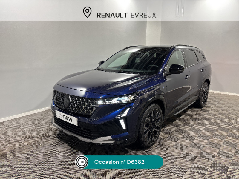 Rétroviseur intérieur électrochrome sans cadre / Sellerie mixte tissu carbone Alcantara® avec surpiqûres bleu, blanc, rouge / Seuil de portes / Sortie sécurisée des occupants / Système de reconnaissance du conducteur / Système ISOFIX sur siège passager & 2 places rang 2 / Système Multimédia openR link 12" : navigation, services Google, audio Arkamys Auditorium / Tableau de bord full numérique 12,3'' / 4Control advanced / 7 places / Lumière d'ambiance personnalisable / Maintenance connectée, incluse pendant 8 ans / Hayon motorisé / Alerte de distance de sécurité / Alerte franchissement de ligne et assistant maintien dans la voie / Assistance de conduite avec une remorque / Avertisseur d'angle mort et prévention sortie de voie en cas de dépassement / Avertisseur de sortie de stationnement en marche AR avec freinage d'urgence automatique / Banquette AR coulissante 1/3-2/3 avec dossier 40/20/40 / Barres de toit longitudinales / Boîte de vitesse hybride multimode 6 rapports / Carte Renault accès et démarrage mains libres / Ciel de toit gris anthracite / Clignotants AR dynamiques / Console de toit avec porte-lunettes / Contrôle de la traction (TCS) / Détection intelligente des limitations de vitesse et prévention survitesse / Faux plancher de coffre / Feux AR à LED avec effet 3D / Feux LED adaptive vision (avec fonction antibrouillard intégrée) / Aide au parking AV/AR et latéral / Jantes alliage 20" Altitude diamanté noir / Miroir de surveillance enfants / Mise à jour système (via firmware over the air FOTA), inclus pendant 5 ans / Multi-sense / My Safety switch (raccourci vers configuration personnalisée des aides à la conduite) / Notice d'utilisation digitale embarqué dans le système multimédia du véhicule / Pack connected driving, inclus pendant 5 ans / Pack contrôle à distance (via l¿application My Renault), inclus pendant 5 ans / Pack Design esprit Alpine / Pack Design esprit Alpine intérieur / Prédisposition éthylotest / Prises au rang 3 / Frein de parking électrique avec fonction Auto-Hold