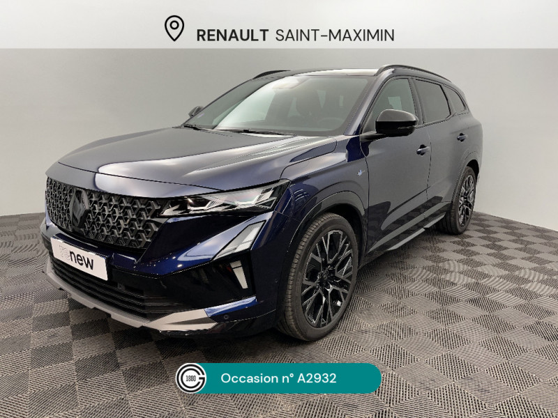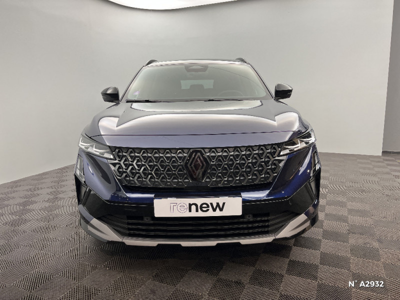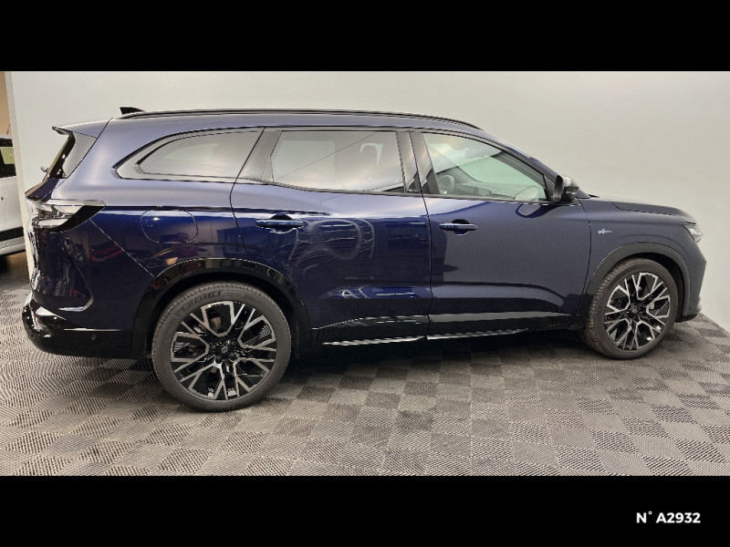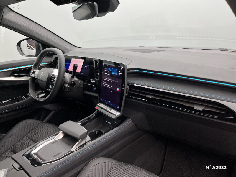 7 places / Système ISOFIX sur siège passager & 2 places rang 2 / Système Multimédia openR link 12" : navigation, services Google, audio Arkamys Auditorium / Tableau de bord full numérique 12,3'' / Volant chauffant / Active driver assist : régulateur de vitesse adaptatif intelligent + centrage dans la voie / Alerte de distance de sécurité / Alerte franchissement de ligne et assistant maintien dans la voie / Assistance de conduite avec une remorque / Assistant éco-conduite prédictif / Avertisseur d'angle mort et prévention sortie de voie en cas de dépassement / Barres de toit longitudinales / Boîte de vitesse hybride multimode 6 rapports / Caméra 3D vision 360° / Carte Renault accès et démarrage mains libres / Ciel de toit gris anthracite / Clignotants AR dynamiques / Console de toit avec porte-lunettes / Contrôle de la traction (TCS) / Détection intelligente des limitations de vitesse et prévention survitesse / Eclairage d'accompagnement au sol avec projection logo / Faux plancher de coffre / Feux AR à LED avec effet 3D / Feux LED adaptive vision (avec fonction antibrouillard intégrée) / Frein de parking électrique avec fonction Auto-Hold / Hayon motorisé mains libres / Intérieur Iconic gris / Jantes alliage 20" Effie diamantées noir / Lumière d'ambiance personnalisable / Maintenance connectée, incluse pendant 8 ans / Miroir de surveillance enfants / Mise à jour système (via firmware over the air FOTA), inclus pendant 5 ans / Multi-sense / My Safety switch (raccourci vers configuration personnalisée des aides à la conduite) / Notice d'utilisation digitale embarqué dans le système multimédia du véhicule / Pack connected driving, inclus pendant 5 ans / Pack contrôle à distance (via l¿application My Renault), inclus pendant 5 ans / Parking mains-libres (inclus aides au parking AV, AR et latérale) / Prédisposition éthylotest / Prises au rang 3 / Avertisseur de sortie de stationnement en marche AR avec freinage d'urgence automatique / Banquette AR coulissante 1/3-2/3 avec dossier 40/20/40 / Rétroviseur intérieur électrochrome sans cadre / Rétroviseurs extérieurs électriques à mémoire, dégivrants, rabattables automatiquement / Sellerie mixte tissu gris / textile enduit grainé clair / Seuil de portes / Sièges AV électriques à mémoire avec réglage et massage lombaire conducteur / Sortie sécurisée des occupants / Système de reconnaissance du conducteur / 4Control advanced