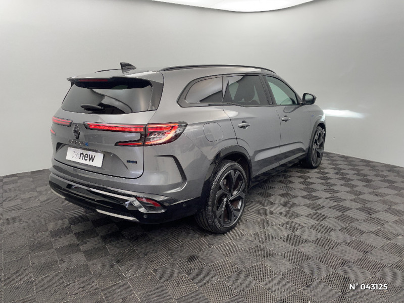 Sortie sécurisée des occupants / Avertisseur de sortie de stationnement en marche AR avec freinage d'urgence automatique / Classe energetique 1 / Assistance de conduite avec une remorque / 7 places / Banquette AR coulissante 1/3-2/3 avec dossier 40/20/40 / Pack Design esprit Alpine avec calandre à damiers / Sellerie mixte textile enduit grainé / tissu / Prises au rang 3 / Barres de toit longitudinales / Aide au parking AV/AR et latéral / Commutation automatique des feux de route/croisement / Multi-sense / Carte Renault accès et démarrage mains libres / Système Multimédia openR link 12" : navigation, services Google, audio Arkamys Auditorium / Système ISOFIX sur siège passager & 2 places rang 2 / Alerte de distance de sécurité / Freinage actif d'urgence urbain (piéton + cycliste + intersection) / Avertisseur d?angle mort et prévention sortie de voie en cas de dépassement / 4Control advanced / Feux AV full LED Adaptative Vision / Faux plancher de coffre / Hayon motorisé main libre / Miroir de surveillance enfants / Lumière d'ambiance personnalisable / Rétroviseur intérieur électrochrome sans cadre / Ciel de toit gris anthracite / Clignotants AR dynamiques / Feux AR à LED avec effet 3D / Jantes alliage 20" Daytona diamantées noir / Pack Design esprit Alpine intérieur / Sellerie mixte tissu carbone / alcantara avec surpiqures bleu / Seuil de portes / Volant cuir & Alcantara et surpiqures bleu/blanc/rouge / Tableau de bord full numérique 12,3'' / Alerte franchissement de ligne et assistant maintien dans la voie