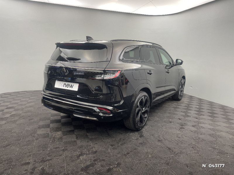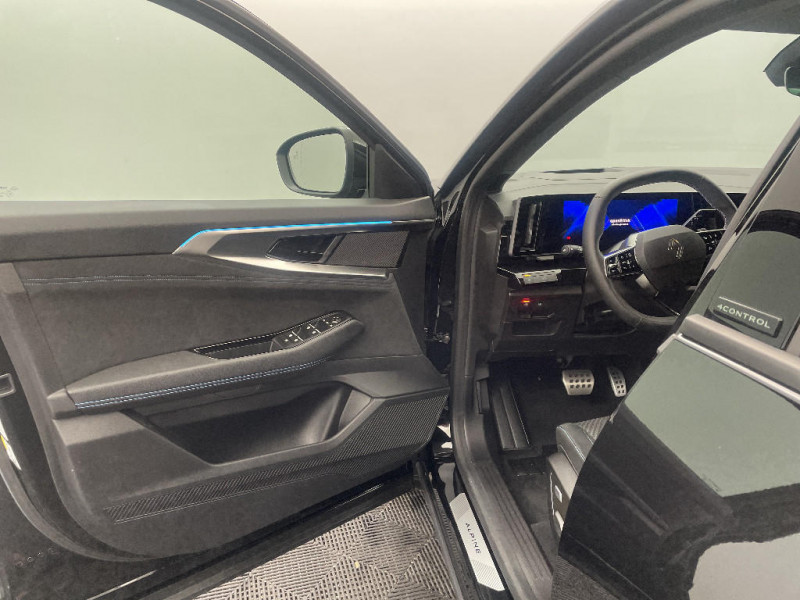 Feux AV full LED Adaptative Vision / Faux plancher de coffre / Hayon motorisé main libre / Aide au parking AV/AR et latéral / Miroir de surveillance enfants / Lumière d'ambiance personnalisable / Jantes alliage 20" Daytona diamantées noir / Pack Design esprit Alpine intérieur / Sellerie mixte tissu carbone / alcantara avec surpiqures bleu / Seuil de portes / Tableau de bord full numérique 12,3'' / Alerte franchissement de ligne et assistant maintien dans la voie / Avertisseur de sortie de stationnement en marche AR avec freinage d'urgence automatique / Sortie sécurisée des occupants / Assistance de conduite avec une remorque / 7 places / Banquette AR coulissante 1/3-2/3 avec dossier 40/20/40 / Pack Design esprit Alpine avec calandre à damiers / Rétroviseur intérieur électrochrome sans cadre / Ciel de toit gris anthracite / Clignotants AR dynamiques / Feux AR à LED avec effet 3D / Barres de toit longitudinales / Commutation automatique des feux de route/croisement / Multi-sense / Carte Renault accès et démarrage mains libres / Alerte de distance de sécurité / Avertisseur d?angle mort et prévention sortie de voie en cas de dépassement / Frein de parking électrique avec fonction Auto-Hold / 4Control advanced / Prédisposition éthylotest / Détection intelligente des limitations de vitesse et prévention survitesse / My Safety switch (raccourci vers configuration personnalisée des aides à la conduite) / Intérieur Iconic gris / Prises au rang 3 / Système Multimédia openR link 12" : navigation, services Google, audio Arkamys Auditorium / Système ISOFIX sur siège passager & 2 places rang 2 / Alerte détection de fatigue / Contrôle de la traction (TCS) / Boîte de vitesse automatique 4 rapports