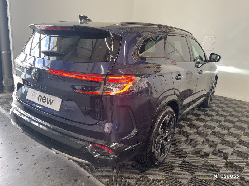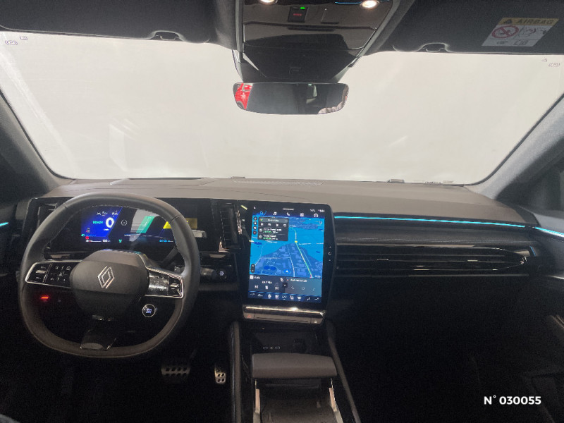 Système Multimédia openR link 12" : navigation, services Google, audio Arkamys Auditorium / Système ISOFIX sur siège passager & 2 places rang 2 / Alerte détection de fatigue / Prédisposition éthylotest / Détection intelligente des limitations de vitesse et prévention survitesse / My Safety switch (raccourci vers configuration personnalisée des aides à la conduite) / Intérieur Iconic gris / Contrôle de la traction (TCS) / Boîte de vitesse automatique 4 rapports / Prises au rang 3 / Multi-sense / Carte Renault accès et démarrage mains libres / Alerte de distance de sécurité / Avertisseur d?angle mort et prévention sortie de voie en cas de dépassement / Frein de parking électrique avec fonction Auto-Hold / 4Control advanced / Feux AV full LED Adaptative Vision / Faux plancher de coffre / Hayon motorisé main libre / Miroir de surveillance enfants / Lumière d'ambiance personnalisable / Rétroviseur intérieur électrochrome sans cadre / Ciel de toit gris anthracite / Clignotants AR dynamiques / Feux AR à LED avec effet 3D / Jantes alliage 20" Daytona diamantées noir / Pack Design esprit Alpine intérieur / Sellerie mixte tissu carbone / alcantara avec surpiqures bleu / Seuil de portes / Tableau de bord full numérique 12,3'' / Alerte franchissement de ligne et assistant maintien dans la voie / Avertisseur de sortie de stationnement en marche AR avec freinage d'urgence automatique / Sortie sécurisée des occupants / Assistance de conduite avec une remorque / 7 places / Banquette AR coulissante 1/3-2/3 avec dossier 40/20/40 / Pack Design esprit Alpine avec calandre à damiers / Barres de toit longitudinales / Aide au parking AV/AR et latéral / Commutation automatique des feux de route/croisement