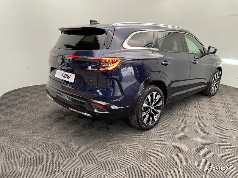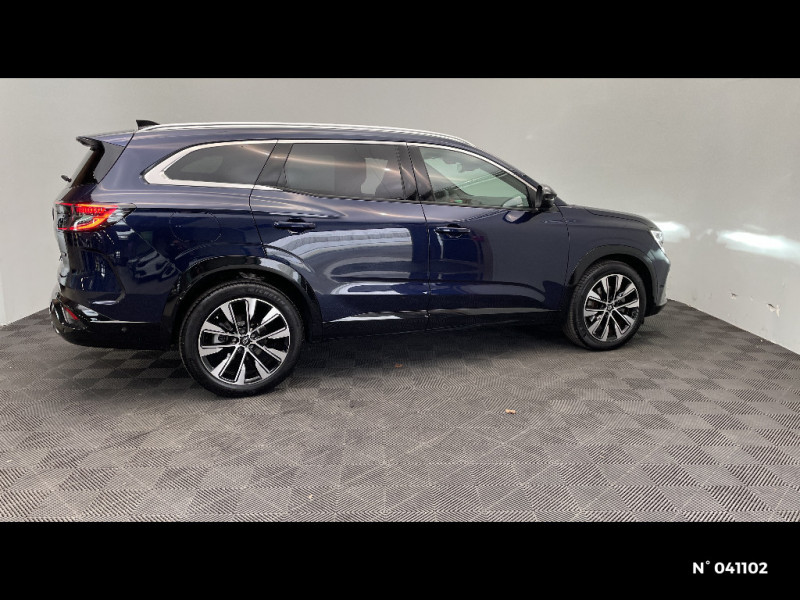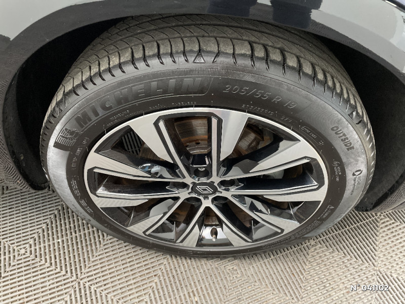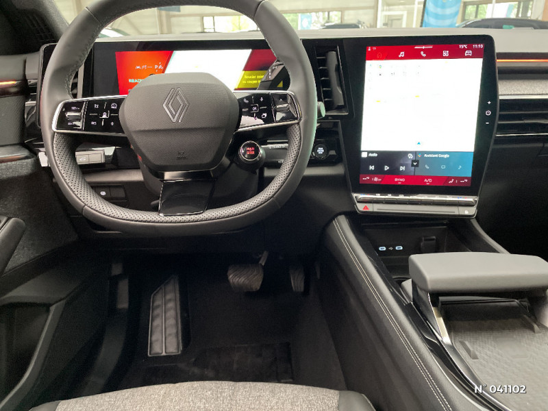 Détection intelligente des limitations de vitesse et prévention survitesse / My Safety switch (raccourci vers configuration personnalisée des aides à la conduite) / Contrôle de la traction (TCS) / Boîte de vitesse automatique 4 rapports / Sellerie mixte tissu gris / textile enduit grainé noir / Ciel de toit gris anthracite / Jantes alliage 19" Komah diamantées noir / Tableau de bord full numérique 12,3'' / Alerte franchissement de ligne et assistant maintien dans la voie / Avertisseur de sortie de stationnement en marche AR avec freinage d'urgence automatique / Barres de toit longitudinales / Aide au parking AV/AR et latéral / Commutation automatique des feux de route/croisement / Multi-sense / Carte Renault accès et démarrage mains libres / Banquette AR coulissante 1/3-2/3 avec dossier 40/20/40 / Prises au rang 3 / Système Multimédia openR link 12" : navigation, services Google, audio Arkamys Auditorium / Système ISOFIX sur siège passager & 2 places rang 2 / Sortie sécurisée des occupants / Assistance de conduite avec une remorque / 7 places / Alerte détection de fatigue / Prédisposition éthylotest / Alerte de distance de sécurité / Avertisseur d?angle mort et prévention sortie de voie en cas de dépassement / Frein de parking électrique avec fonction Auto-Hold / Feux AV full LED Adaptative Vision / Faux plancher de coffre / Miroir de surveillance enfants / Lumière d'ambiance personnalisable / Rétroviseur intérieur électrochrome sans cadre