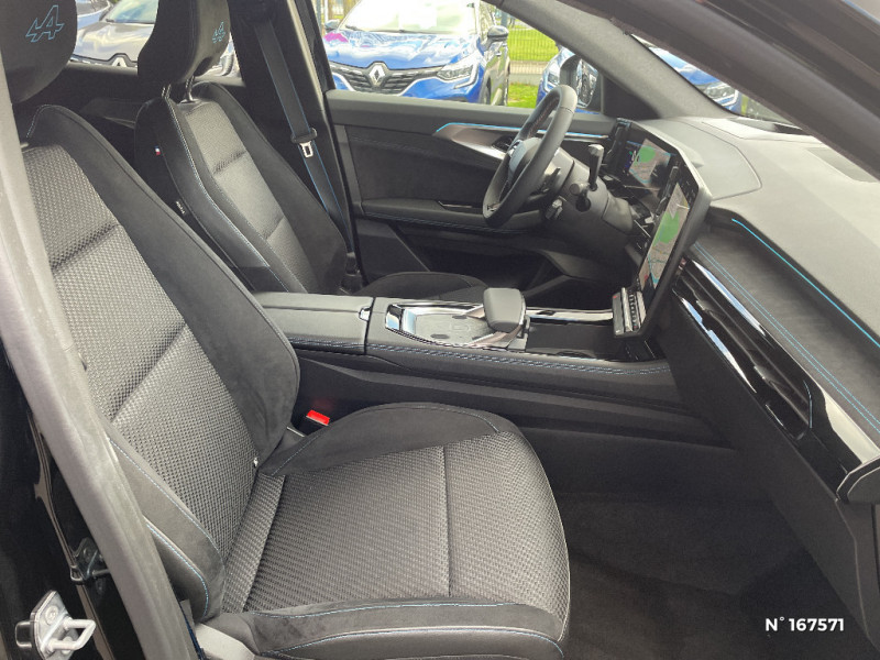 Avertisseur d?angle mort et prévention sortie de voie en cas de dépassement / Frein de parking électrique avec fonction Auto-Hold / 4Control advanced / Feux AV full LED Adaptative Vision / Faux plancher de coffre / Hayon motorisé main libre / Miroir de surveillance enfants / Lumière d'ambiance personnalisable / Rétroviseur intérieur électrochrome sans cadre / Ciel de toit gris anthracite / Clignotants AR dynamiques / Feux AR à LED avec effet 3D / 7 places / Banquette AR coulissante 1/3-2/3 avec dossier 40/20/40 / Pack Design esprit Alpine avec calandre à damiers / Prises au rang 3 / Système Multimédia openR link 12" : navigation, services Google, audio Arkamys Auditorium / Système ISOFIX sur siège passager & 2 places rang 2 / Alerte détection de fatigue / Prédisposition éthylotest / Détection intelligente des limitations de vitesse et prévention survitesse / My Safety switch (raccourci vers configuration personnalisée des aides à la conduite) / Intérieur Iconic gris / Contrôle de la traction (TCS) / Boîte de vitesse automatique 4 rapports / Jantes alliage 20" Daytona diamantées noir / Pack Design esprit Alpine intérieur / Sellerie mixte tissu carbone / alcantara avec surpiqures bleu / Seuil de portes / Tableau de bord full numérique 12,3'' / Alerte franchissement de ligne et assistant maintien dans la voie / Avertisseur de sortie de stationnement en marche AR avec freinage d'urgence automatique / Sortie sécurisée des occupants / Assistance de conduite avec une remorque / Barres de toit longitudinales / Aide au parking AV/AR et latéral / Commutation automatique des feux de route/croisement / Multi-sense / Carte Renault accès et démarrage mains libres / Alerte de distance de sécurité